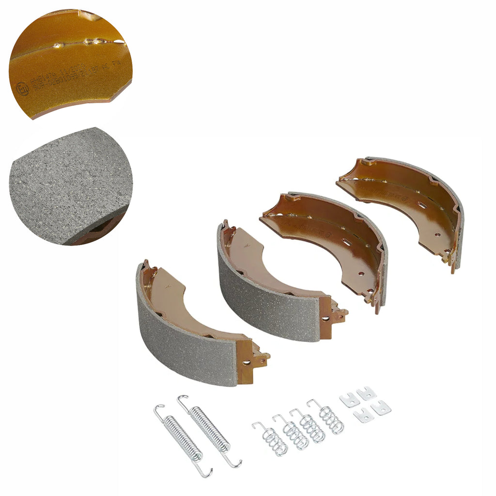 - Satz: 4x Bremsbacken, 4x Druckfedern, 4x Haltebleche, 2x Zugfedern