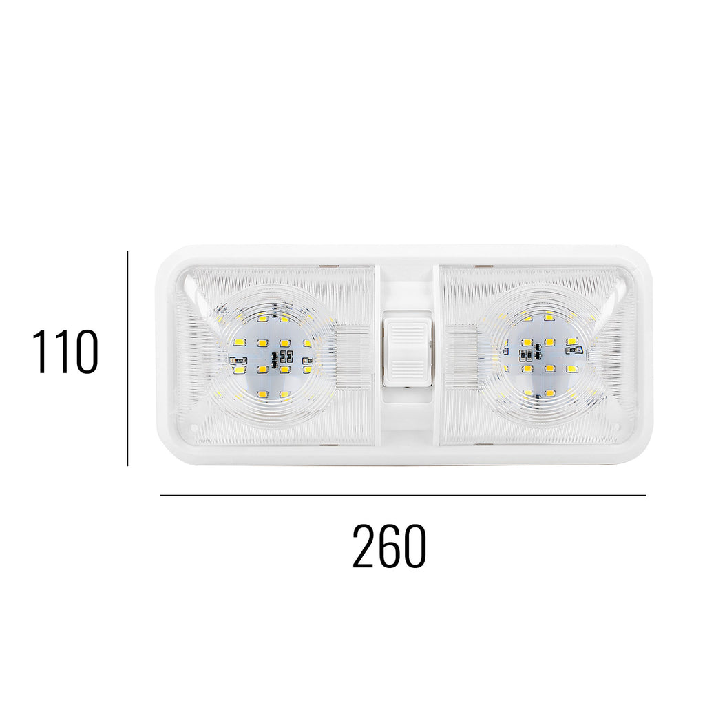 Die Wohnwagen Innenbeleuchtung wird mit insgesamt 48 fest verbauten LEDs geliefert. Die LEDs strahlen in Warmweiß mit einer Farbtemperatur von 3.000 K. Darüber hinaus liefert der Lichtstrom eine Leistung von 640 lm.