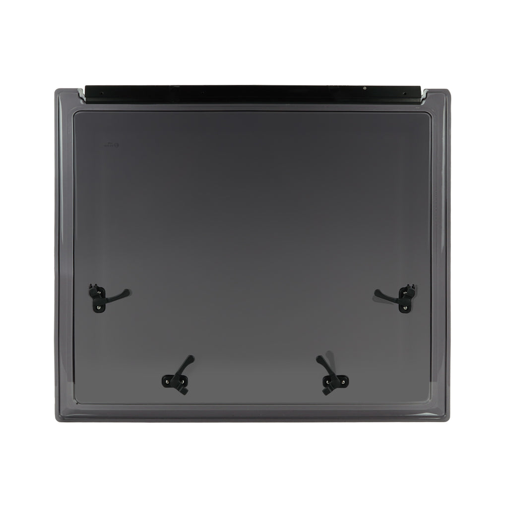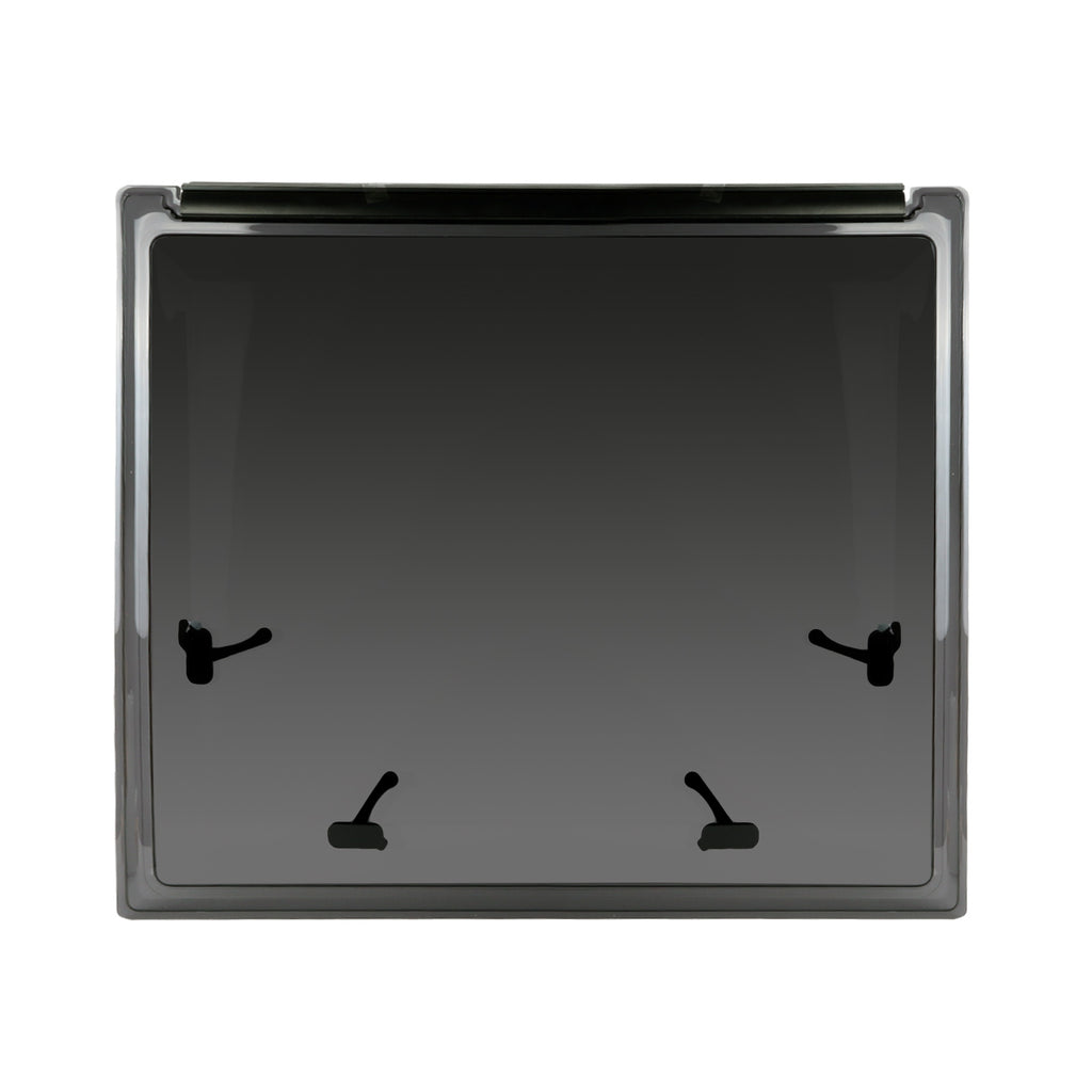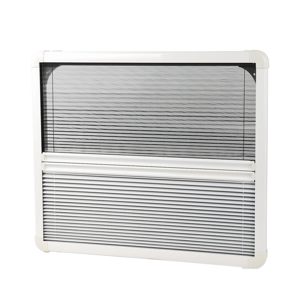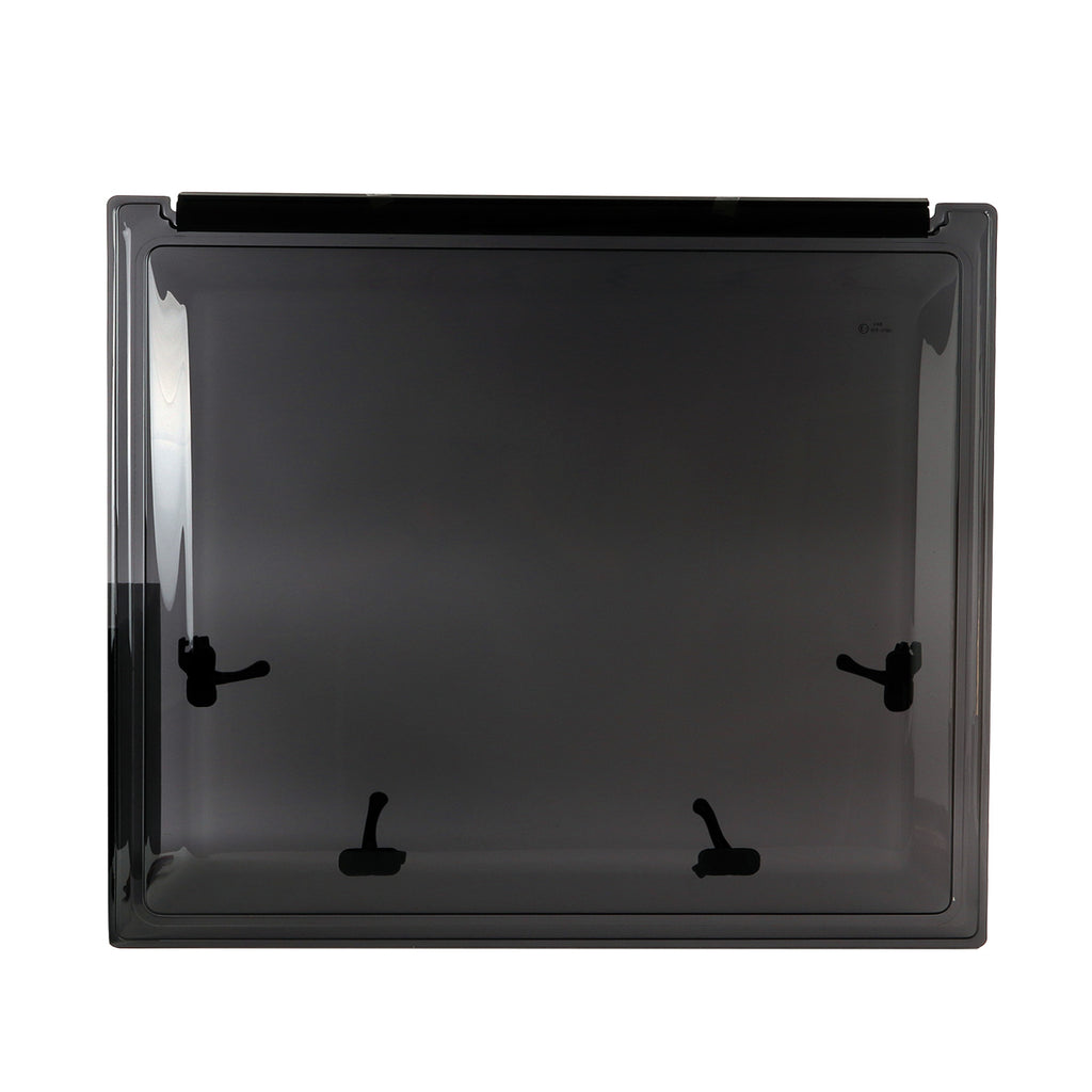 Diese vorgehängte Fensterscheibe besticht durch leichtes, rahmenloses Design und einen einfachen Einbau. Die getönte, doppelverglaste Scheibe aus Acryglas lässt sich dank des 3-stufigen Alu-Teleskopaufstellers in einem Winkel bis max. 70° öffnen. Inklusive Innenrahmen mit Rollo und Moskitonetz, welches für die notwendige Verdunklung bei Bedarf sorgt und die lästig surrenden Biester fernhält.