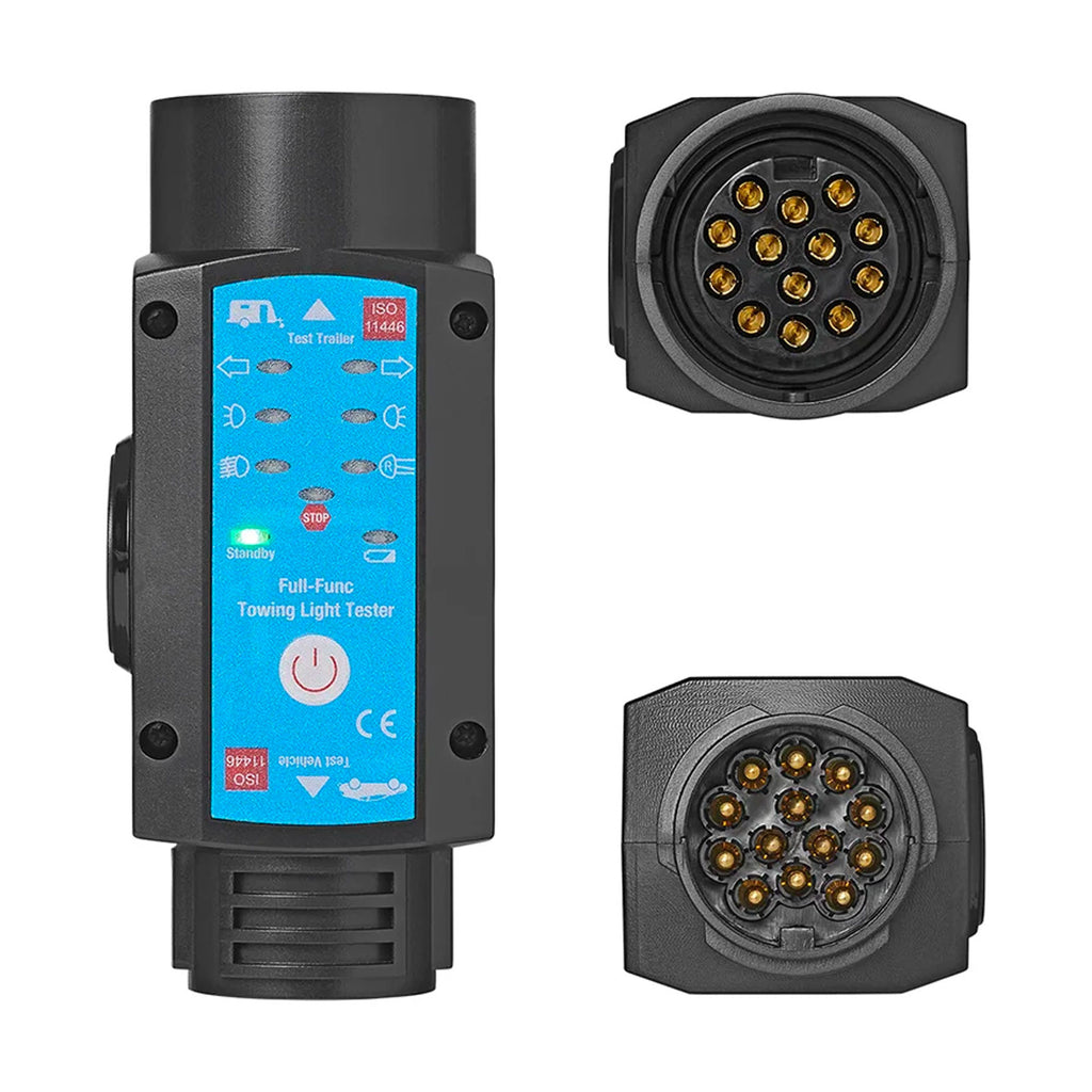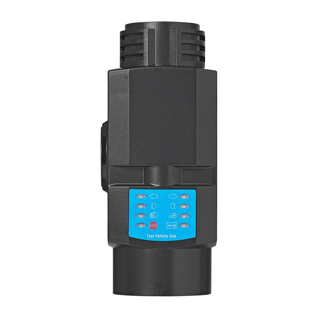 Das Testgerät prüft die Blinker, Rückleuchte, Bremsleuchte, Rückfahrtlicht und Nebelschlussleuchte deines Wohnwagens, Wohnmobils oder Anhängers. Verbaut ist eine wiederaufladbare 3,7 V 850 mAh Lithium Batterie.