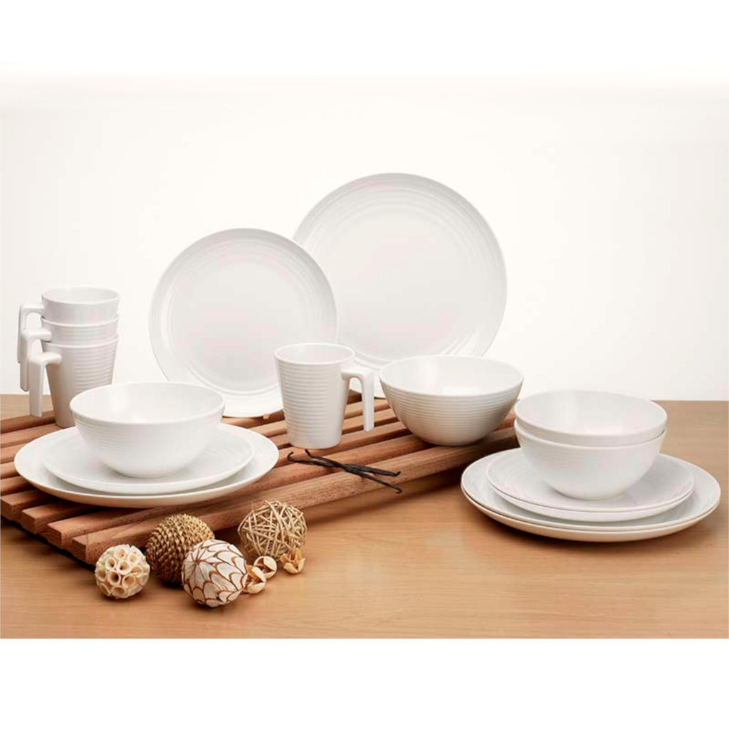 Lieferumfang: Camp4 VANILLA Melamin-Geschirrset, 4x Essteller, 4x Dessertteller, 4x Schüssel, 4x Tasse mit Henkel