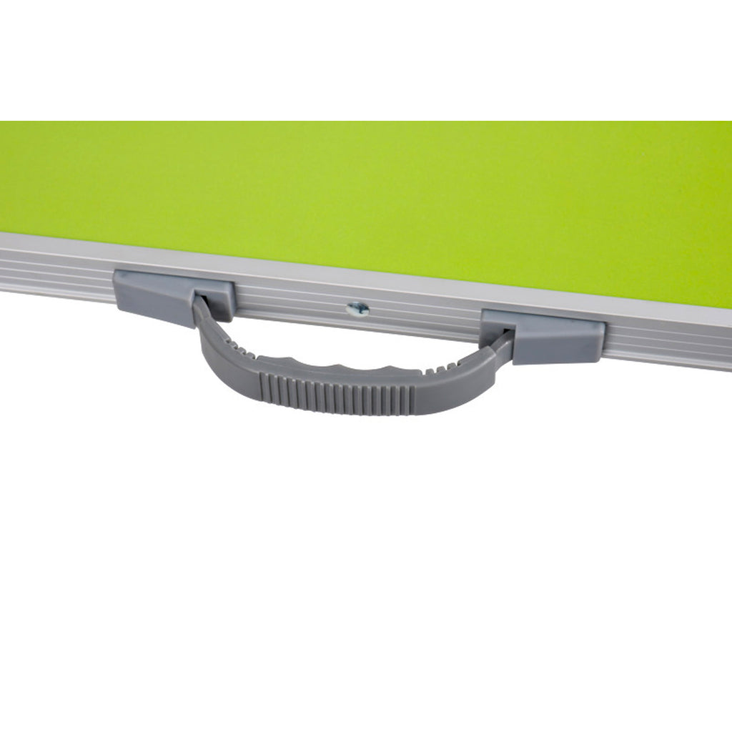 Kleiner und handlicher Campingtisch für 2 - 4 Personen. Robuste MDF-Tischplatte in einem sommerlichen Limetten-Grün. Kompaktes Packmaß durch einklappbare Füße. Dank seitlichem Griff und einem Aluminiumgestell lässt sich der faltbare Campingtisch der Serie Jesper leicht transportieren.