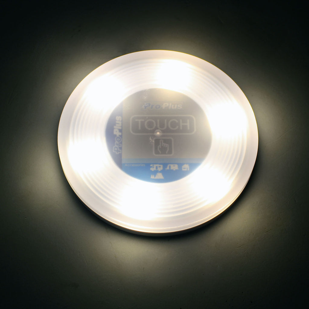 Die ProPlus Campingleuchte "UFO" besticht durch das zeitlose Design und die dimmbare Helligkeit. Sie findet Anwendung als Schrankbeleuchtung, Leselicht oder Notbeleuchtung. Dadurch das Sie batteriebetrieben ist, ist die Montage ein Kinderspiel. Ideal für Wohnwagen und Wohnmobil.