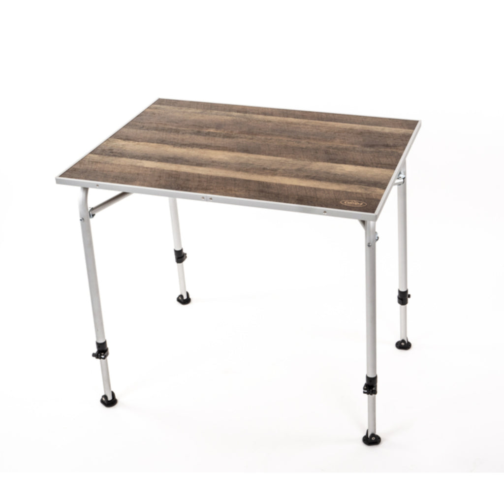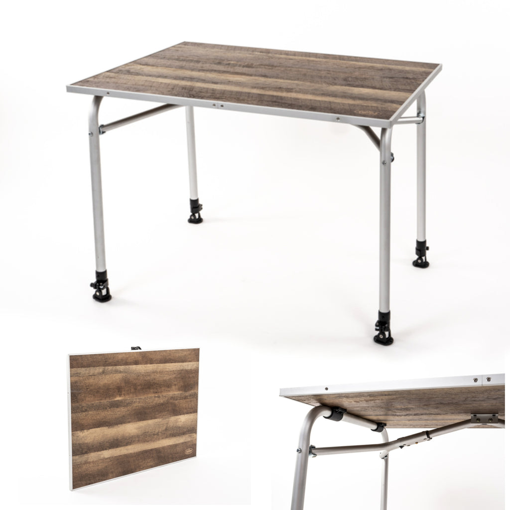 Der leichte Campingtisch TYRESTA jetzt auch in kleiner Größe mit Tischplatte in trendiger Holz-Optik. Die Optimierung des Gestells, durch das neue One Touch-System, ist der Tisch schnell und einfach aufgebaut und rastet sicher ein für mehr Stabilität.