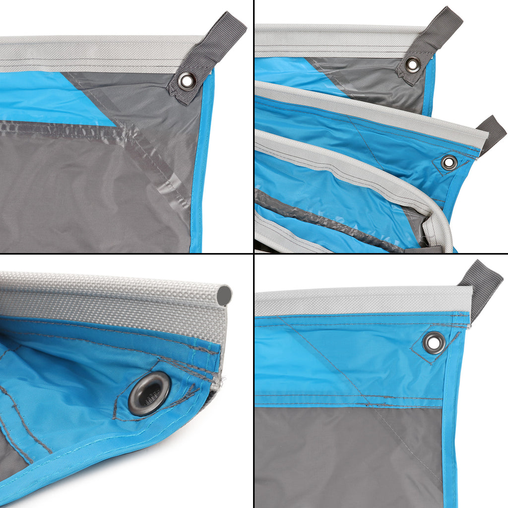 - Spannleinen sowie Aufstellstangen und Heringe im Lieferumfang enthalten