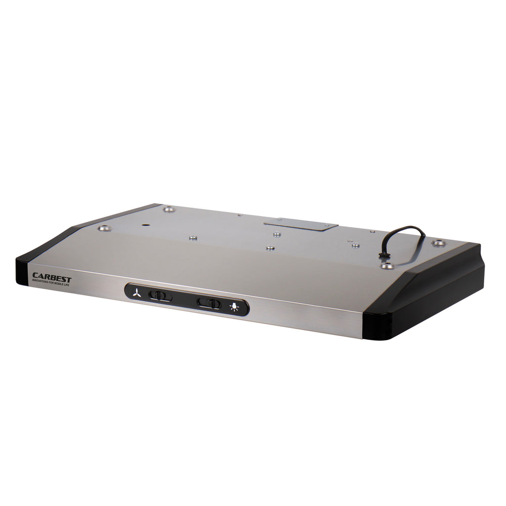 Unterbau-Dunstabzugshaube aus Edelstahl mit Beleuchtung für Wohnwagen und Wohnmobile.
