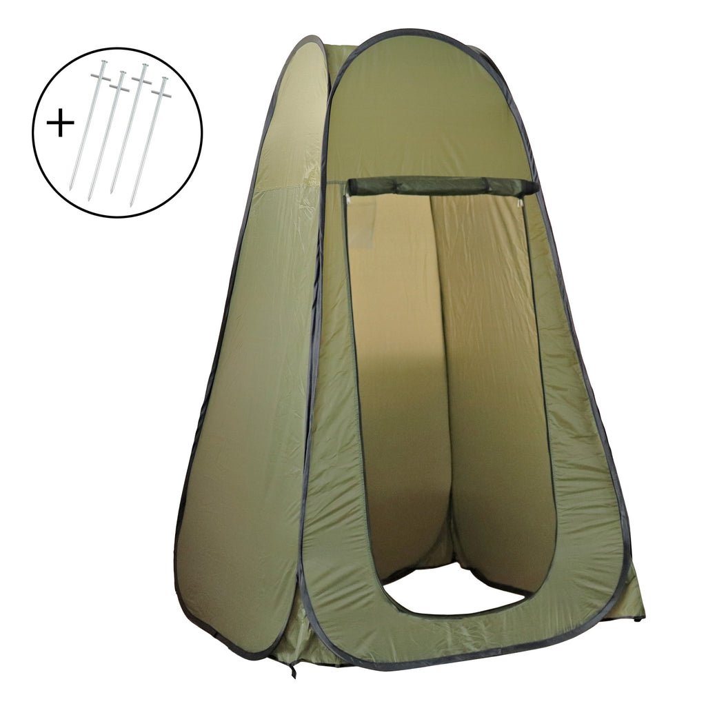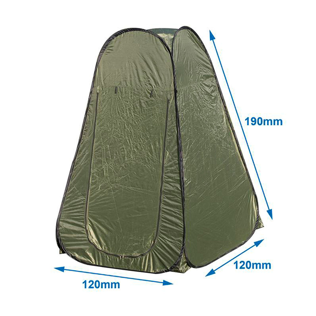 Praktisches Pop-Up Zelt für Campingplatz, Strand oder Festival. Dient zb als Duschzelt, Beistellzelt oder Toilettenzelt. Das neutrale Jagdgrün fügt sich dezent in die Umgebung. Auch als Ansitz oder Angelzelt geeignet