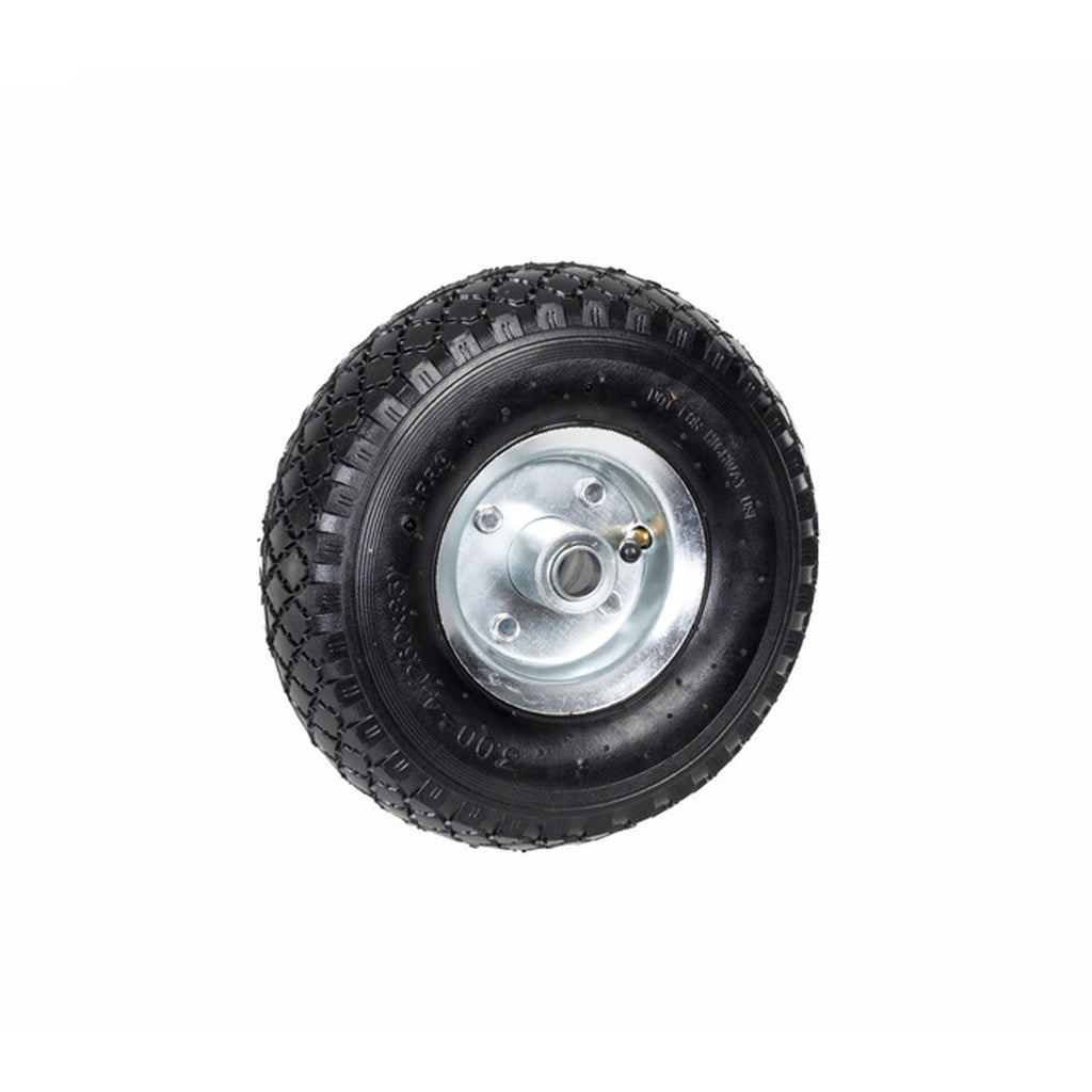 Deichsel-Ersatzrad mit Luftbereifung und Stahlfelgen für Anhänger Stützräder. Der Reifen ist bis zu 150kg belastbar und hat einen Durchmesser von 260 mm und eine Breite von 85 mm.