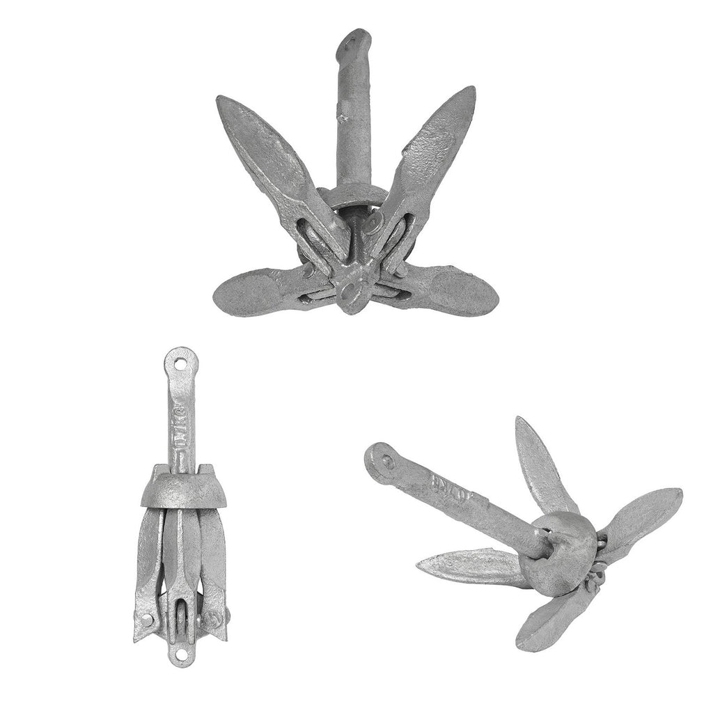 Der verzinkte Anker mit Einklapp-Funktion ist ein smarter Begleiter für den nächsten Boots-Trip. Zu verdanken ist das der vier Armen, die wie ein Regenschirm ganz unkompliziert ein- und ausgeklappt werden können. Der Klappanker der Firma Proplus hat einen eiförmigen Kopf und liegt mit 0,7 kg leicht in der Hand bzw. auf Grund.
