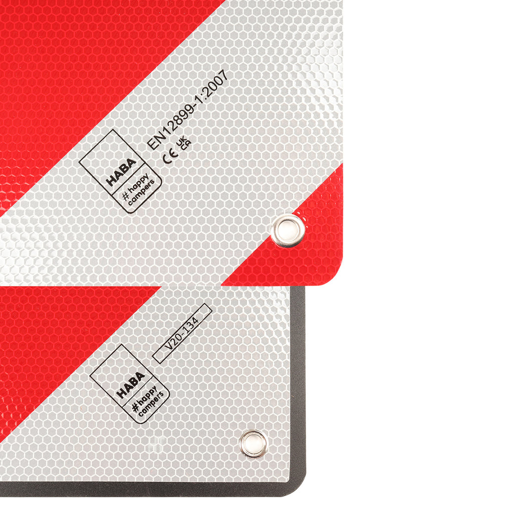 Warntafel für überstehende Ladungen, anzubringen an Reisemobilen, Wohnwagen, Anhänger oder Wohnmobil.