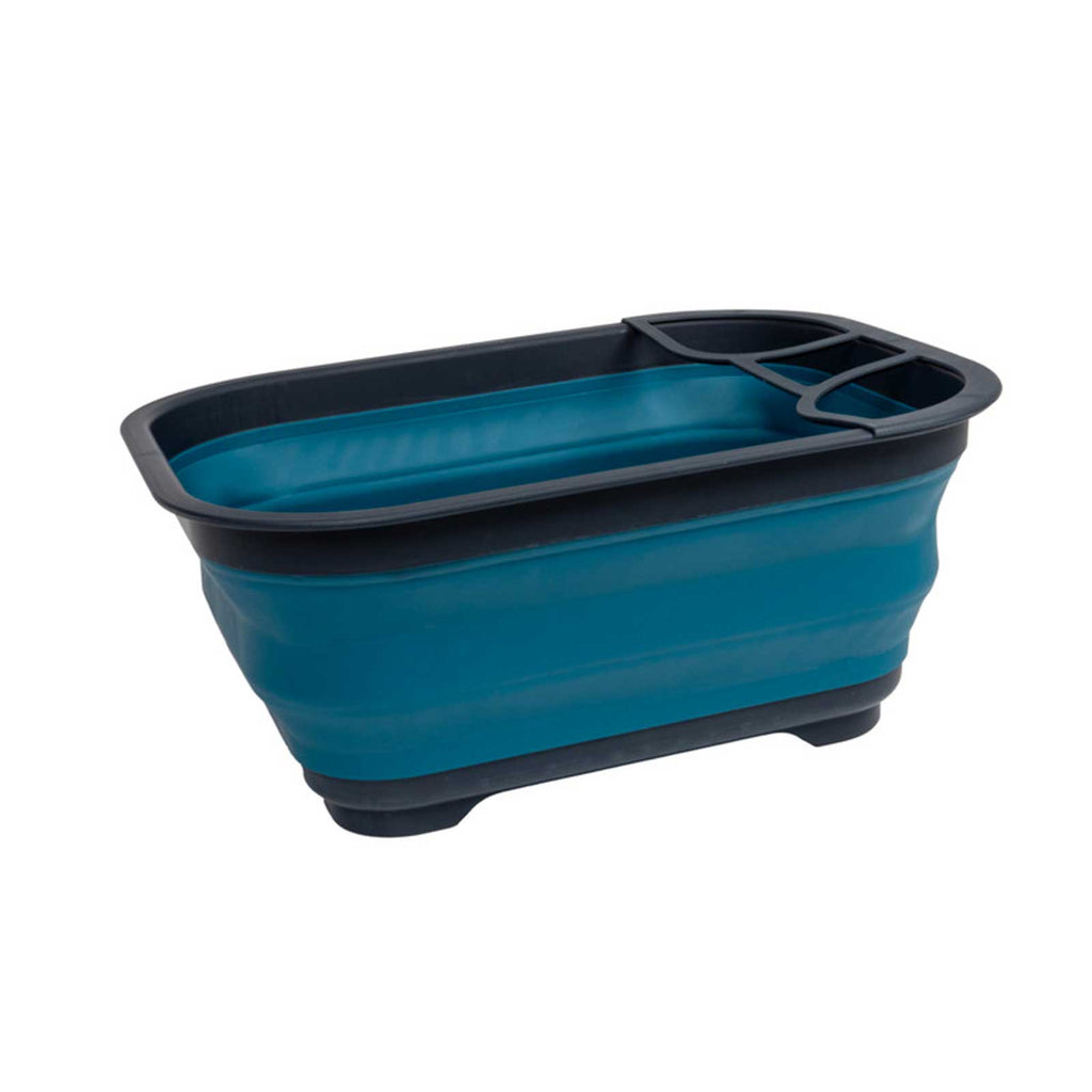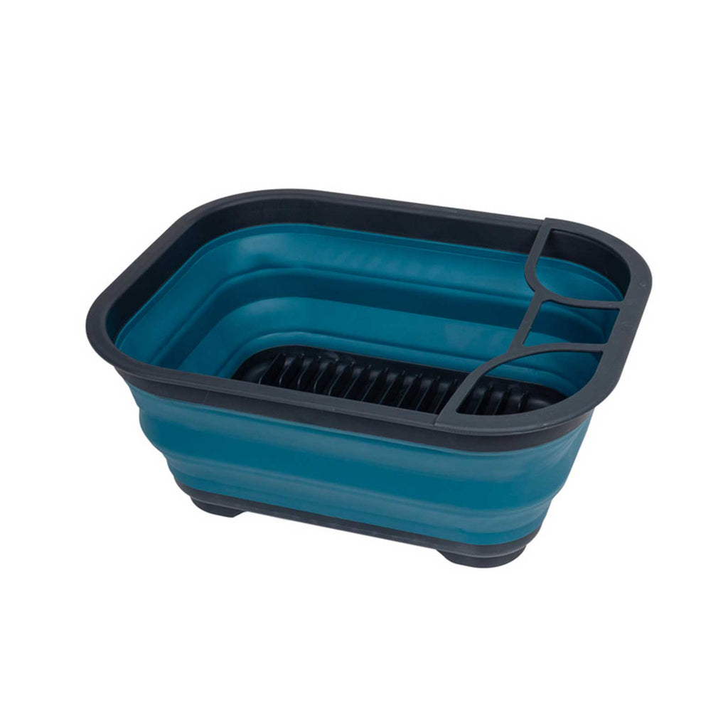Der ideale Reisebegleiter für deinen nächsten Campingurlaub. Ob im Wohnwagen, Wohnmobil oder Campingbus, diese praktische faltbare Spüle inklusive Ablauf und Sieb erleichtert dir den Camping Haushalt. Teller, Gläser und Schüssel können dank des Geschirrtrockners einfach und schnell trocknen. Für Besteck und Kleinteile gibt es extra Besteckfächer, damit diese aufrecht stehend trocknen können. Zusammengefaltet lässt sich das Abtropfgestell einfach und platzsparend verstauen.