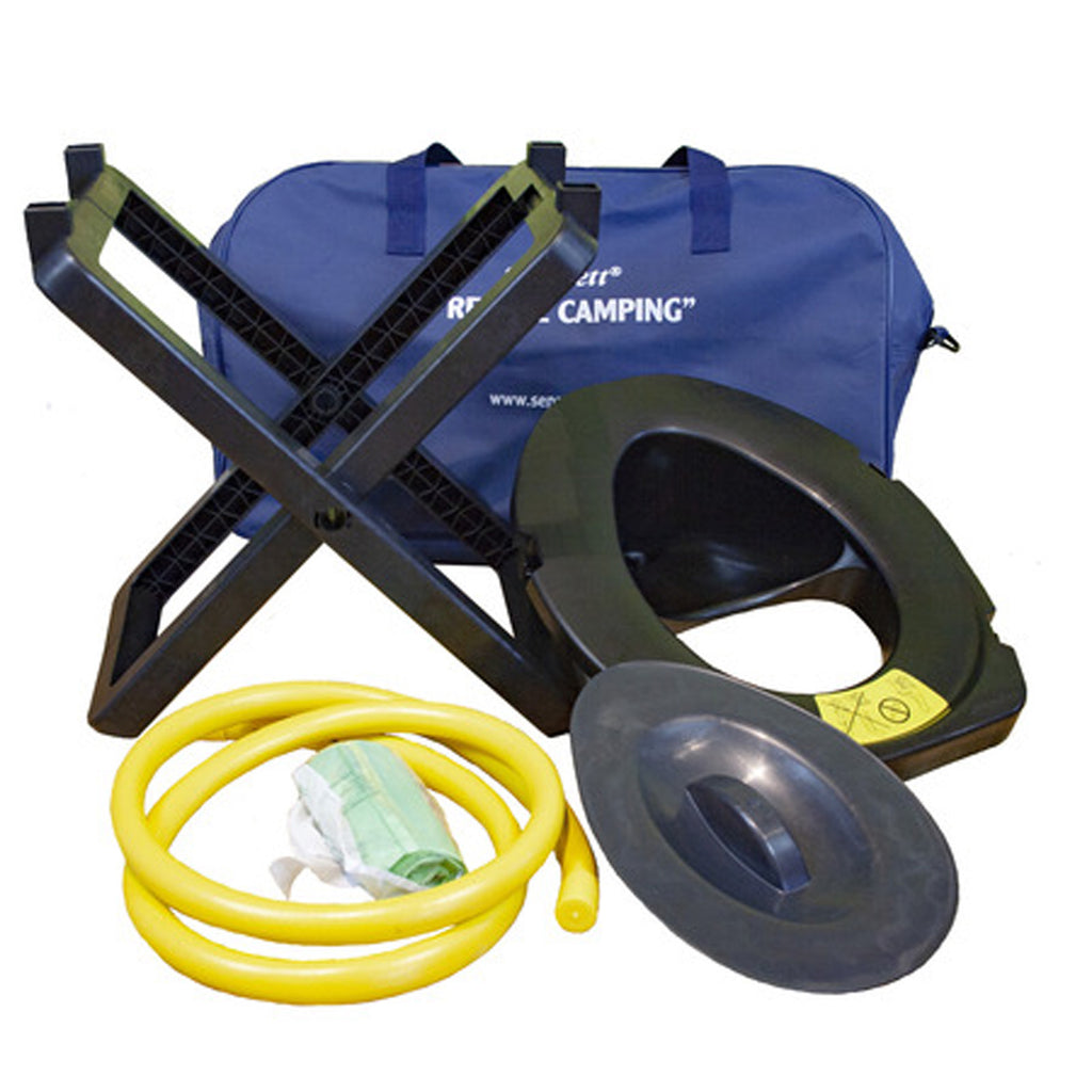 Lieferumfang: Transporttasche, Fußgestell, Urinschlauch, Sitz, Deckel und 2 Stk. kompostierbare Abfallbeutel