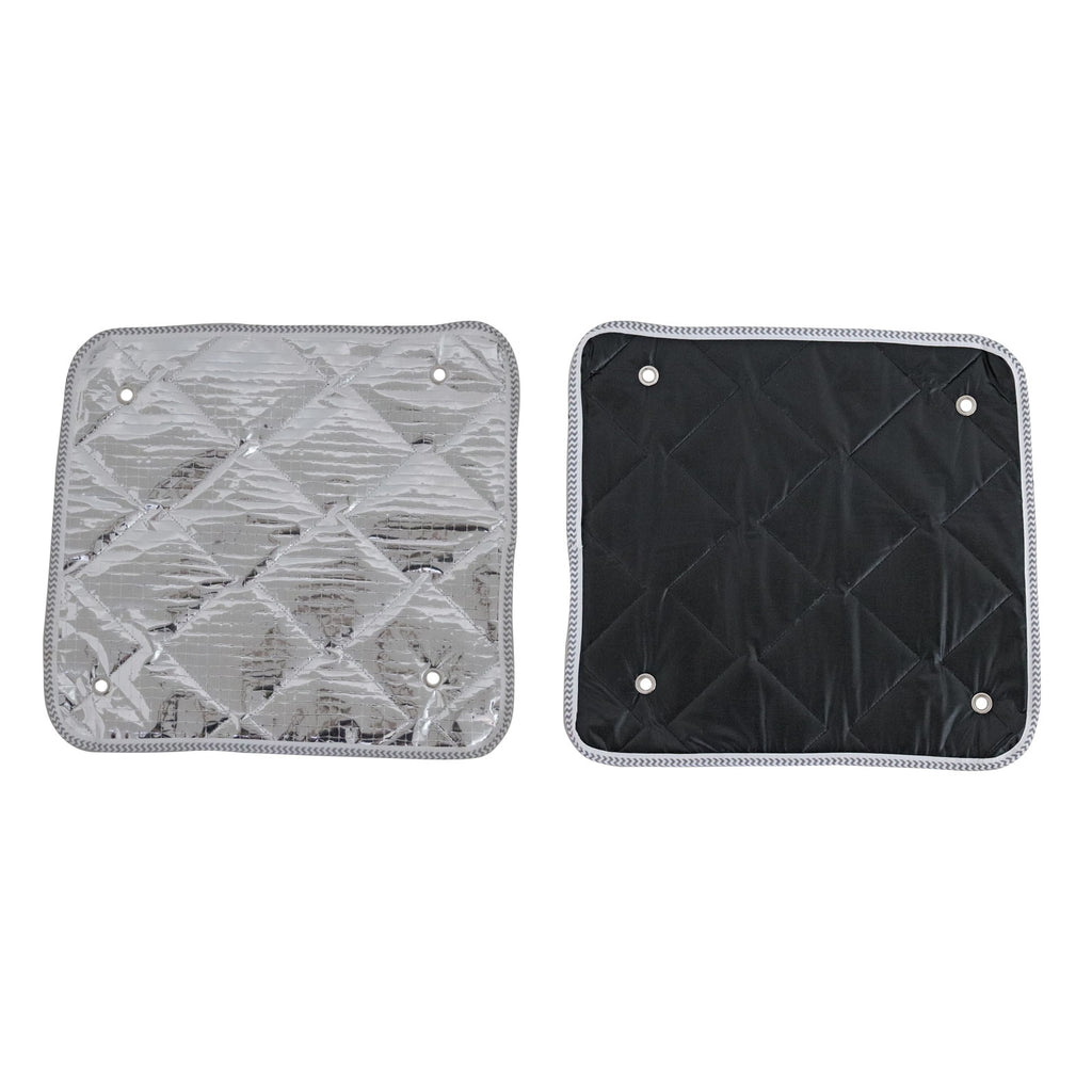 Die Thermomatten wurden speziell für das Mini-Camping konzipiert. Ringsherum sind alle Schichten mit einem Saum sauber vernäht, um ein hässliches Ausfransen zu vermeiden. Eingelassene Ösen dienen der einfach Aufnahme von der im Lieferumfang enthaltenen Saugnapfbefestigung. So können die Thermomatten ohne Kleber oder verschrauben an die Innenseite des Campingbusses angebracht werden.