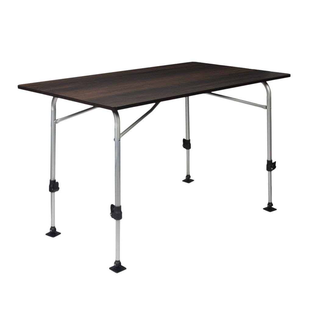 Leichter und pflegeleichter Tisch für Camping, Gartenfeiern und Flohmärkte. Die höhenverstellbaren und drehbaren Füße eignen sich hervorragend für unebenes Gelände. Der Rahmen besteht aus Aluminium und die Oberseite ist hitzebeständig bis zu 100 Grad Celsius. Lieferung inklusive Tragetasche.