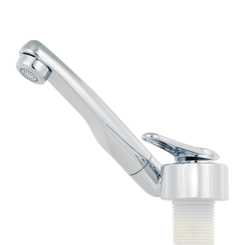 Die 12V Armatur von Comet ist in jeder Nasszelle ein absoluter Blickfang. Mit einer Einbauhöhe von 4 cm ist der 12V Wasserhahn besonders kompakt und passt grundsätzlich in jedes Wohnmobil oder Wohnwagen. Der Auslauf ist dreh- beziehungsweise schwenkbar und bietet so ein Höchstmaß an Flexibilität auf kleinstem Raum. Oberhalb der 12V Armatur befindet sich ein Drehregler, um den Wasserfluss effizienter dosieren zu können. Die beiden mitgelieferten Kabel dienen der Verwendung an der 12V-Stromquelle. Deine bisherige 12V Armatur ist vergilbt oder in die Jahre gekommen? Mit einem Wohnmobil Wasserhahn von Comet bist du auf deinem nächsten Ausflug bestens ausgestattet! Der Einhebelmischer FLORENZ gewährleistet durch den Einsatz erprobter Keramikschei- ben aktuelle und beständige Dichtungstechnik aus dem Haushalt. Der bedienerfreundiche Griff ermöglicht optimales „Mischen" und "Regulieren" der Wassermenge und der Temperatur. Druckwasserbeständig bis 3 bar. Geeignet fur Einbauhöhen bis 40 mm Spüle mit abklappbaren Deckel).