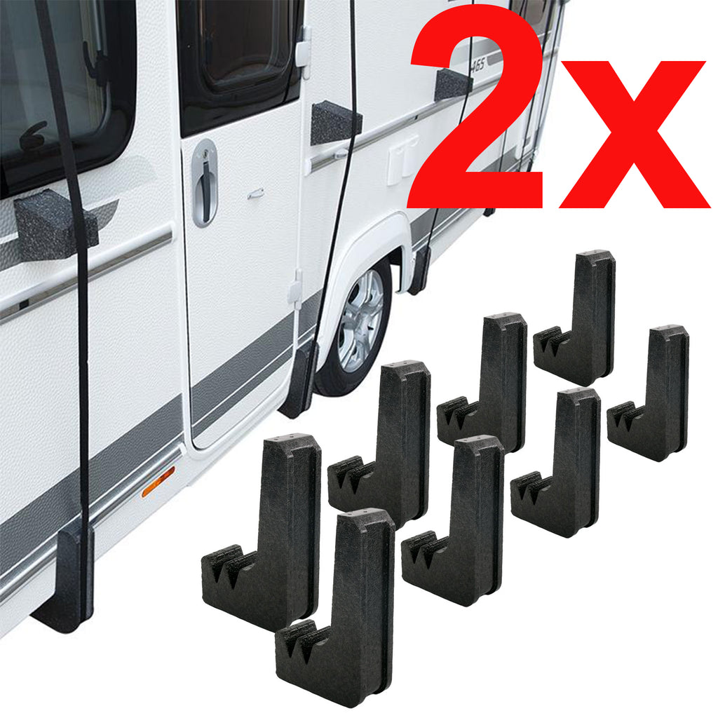 Viele Wohnwagen und Wohnmobilbesitzer schützen Ihr Fahrzeug während der Wintermonate mit einem Schutzdach oder einer Abdeckung. Hier werden oft die Zurrgurte direkt über die Aussenhaut des Fahrzeugs geführt, wo es durch Witterungseinflüsse wie Wind und Mikropartikel zu Reibung kommt. Diese Stellen weisen of enorme Beschädigungen auf. Die Schutzecken ermöglichen eine zur Aussenhaut kontaktlose Verlegung der Zurrgurte und die optimale Verteilung der Zurrkräfte.