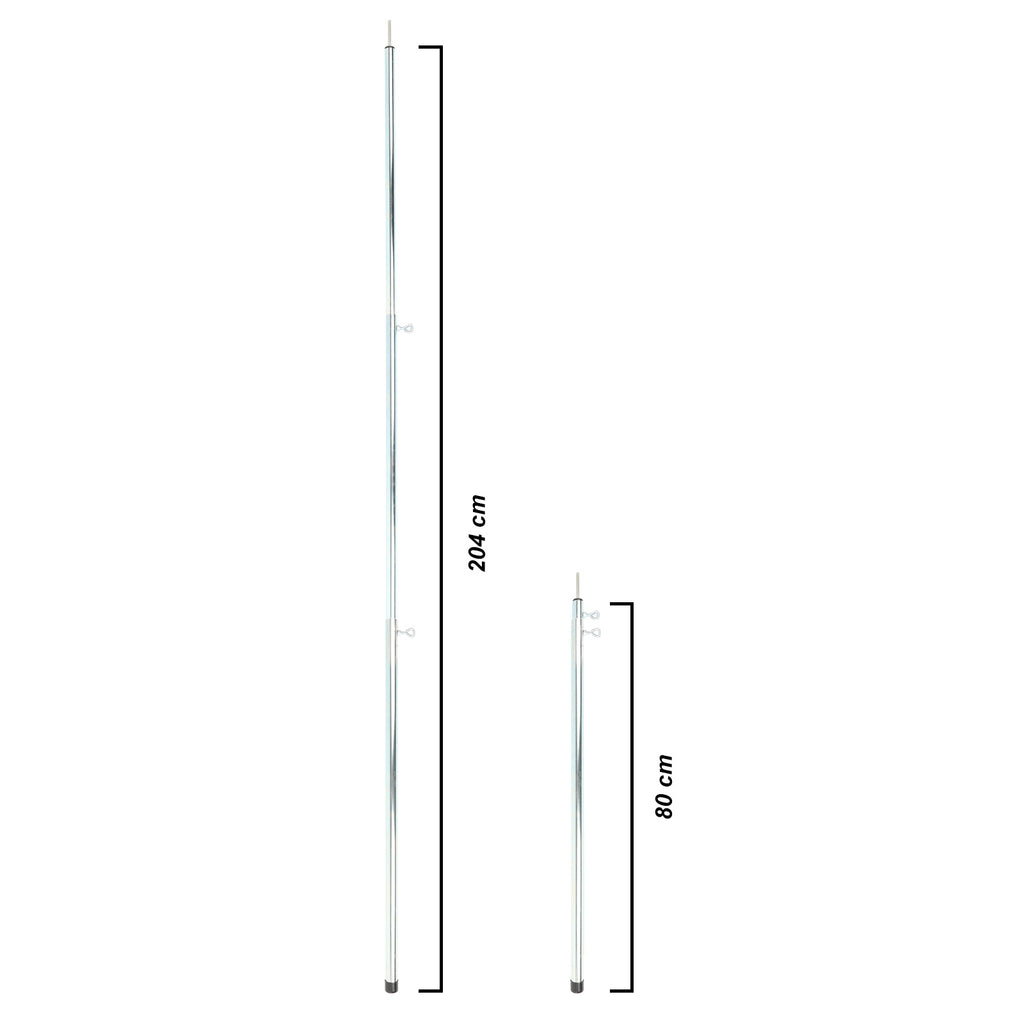 Dank des zweipunkt Verstellsystems können die Aufstellstangen in einer individuellen Höhen von 0,8 m bis 2,04 m aufgebaut werden.