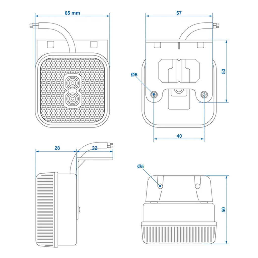 Die LED Seitenmarkierungsleuchte 65 x 65 mm mit Halterung ist die perfekte Wahl für eine langlebige, wetterfeste Fahrzeugmarkierung. Ideal für Anhänger, Wohnmobile, LKWs und Nutzfahrzeuge!