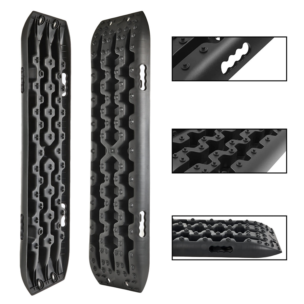 Die Anfahrhilfen werden einfach unter die Räder gelegt - wahlweise vorne oder hinten verwendbar. Die robusten Keile geben den nötigen Grip und eine feste Haftung um das Fahrzeug aus dem Schlamm, Sand oder Schnee zu befreien. Dank der breiten Auffahrfläche, wird dabei das Durchdrehen der Reifen verhindert.