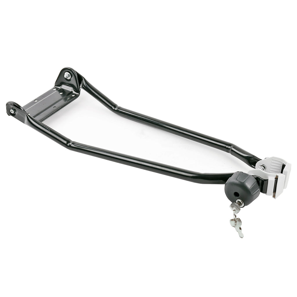 Dieser Fahrradträger für das Autodach lässt sich schnell und einfach auf Ihrem Dachträger montieren. Durch die Rahmenhalterung ist kein Ausbau des Vorderrades nötig. Sicherheit bietet die abschließbare Rahmenklemme.