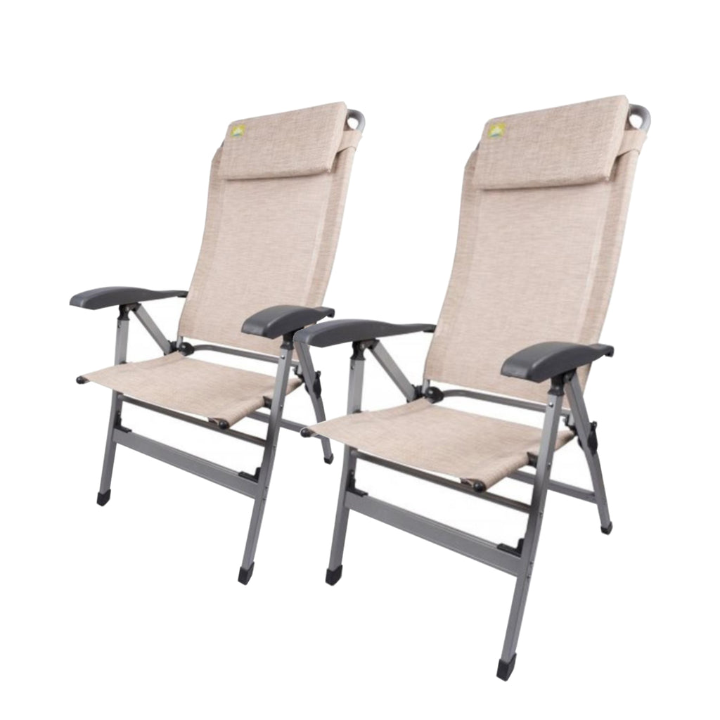 Lieferumfang: 2x Via Mondo Comfort II, Campingstuhl Beige, inkl. Kopfstütze