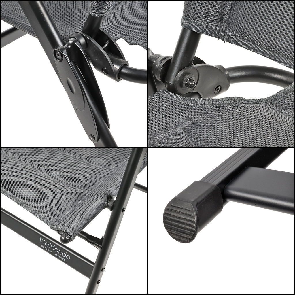 Soll nochmal Jemand sagen, dass Camping keinen Komfort bietet! Der Outdoor-Stuhl der Marke Via Mondo beweist ganz klar das Gegenteil. Gepolsterter Sitz und Rückenlehne. Siebenfach ist das kompakte Entspannungswunder verstellbar, das eine Belastbarkeit von rund 100 kg trägt. Leichter haben Sie noch nie relaxt.