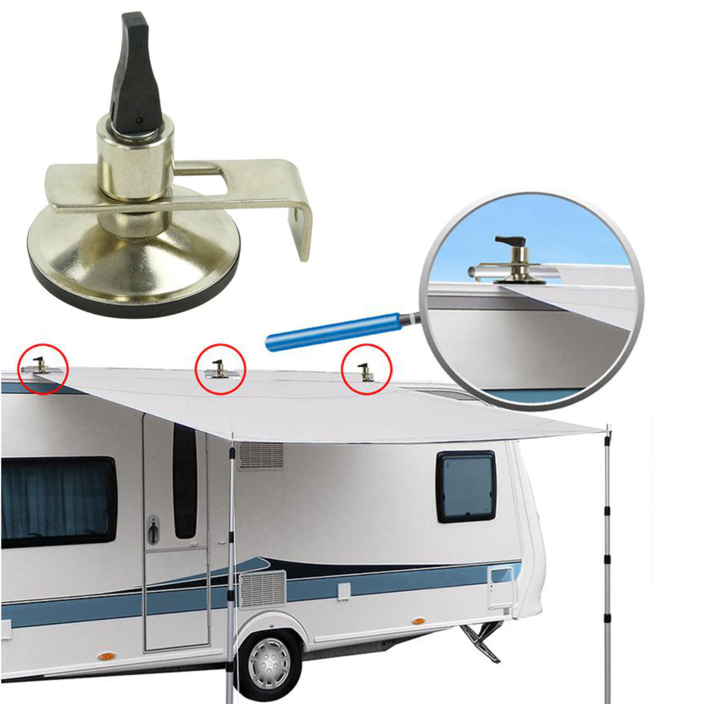 Mit diesen Klappsaugnäpfen befestigen Sie schnell und einfach zb. ein Sonnensegel oder Vorzelt an Ihrem Campingbus. Durch die Tragkraft von bis zu 10Kg können auch große Sonnensegel zuverlässig befestigt werden. Einfach den Saugnapf an einer trockenen und sauberen Stelle des Fahrzeugdachs aufsetzen und den Klapphebel betätigen, schon kann der Schleusenstab eingehangen werden.