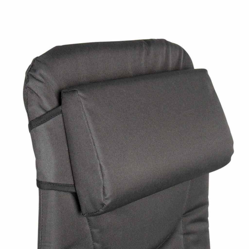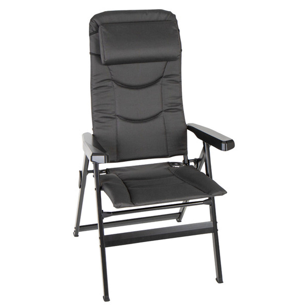 Der Gartenstuhl Campinas mit der hohen ergonomisch geformten Rückenlehne mit abnehmbarem und verschiebbarem Kopfpolster lässt keine Wünsche offen. Das Gestell mit seiner außergewöhnlichen Struktur und der hohen Querstrebe sorgt für großen Komfort beim Sitzen. Der Campingstuhl bietet eine Traglast von bis zu 120 kg und die Klappfunktion, lässt den Stuhl platzsparend verstauen und im Handumdrehen wieder aufbauen. Dank des im Set enthaltenen Hockers kannst du einfach die Beine hochlegen und das Wetter genießen. Die Beinauflage ist freistehend und ebenfalls klappbar und einfach zu verstauen. Neben der Funktion als Beinauflage kann der Hocker ebenfalls als Sitzgelegenheit genutzt werden. Der Campingstuhl inkl. Beinauflage ist nicht nur ein bewährter Begleiter beim Camping, sondern auch im Garten, auf dem Festivalbesuch oder beim Angeln.