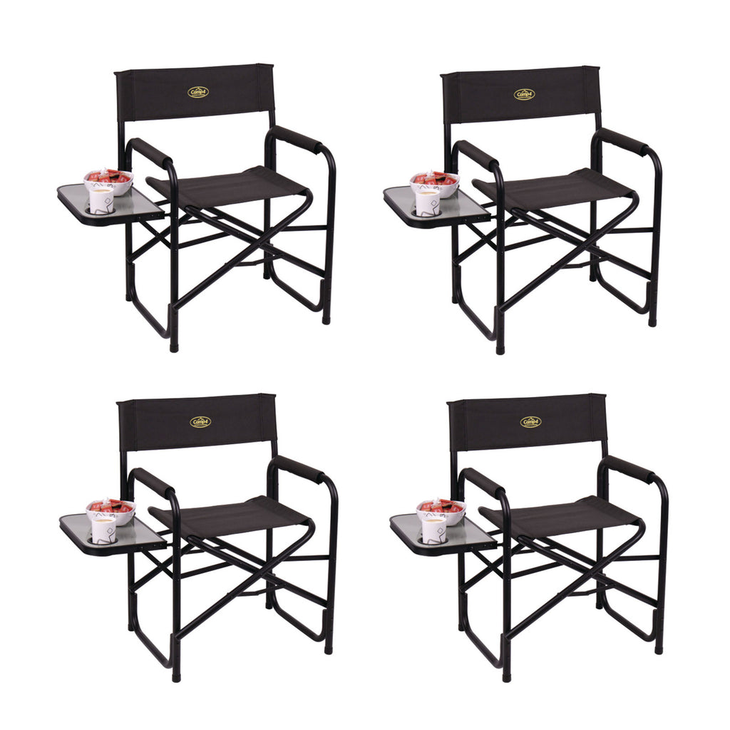 Der edle und kompakte Campingstuhl, mit praktischer Seitenablage und Getränkehalter, ist ein bewährter Begleiter nicht nur beim Camping, sondern auch im Garten, auf dem Festivalbesuch oder beim Angeln. Das robuste, schwarze Aluminiumgestell mit gepolsterten Armlehnen bietet einen sicheren Sitzkomfort, mit einer Traglast von bis zu 100 kg. Durch die Klappfunktion, lässt er sich platzsparend verstauen und somit gut transportieren. Zusätzlich hat der Klappstuhl einen Sicherheits-Faltmechanismus.