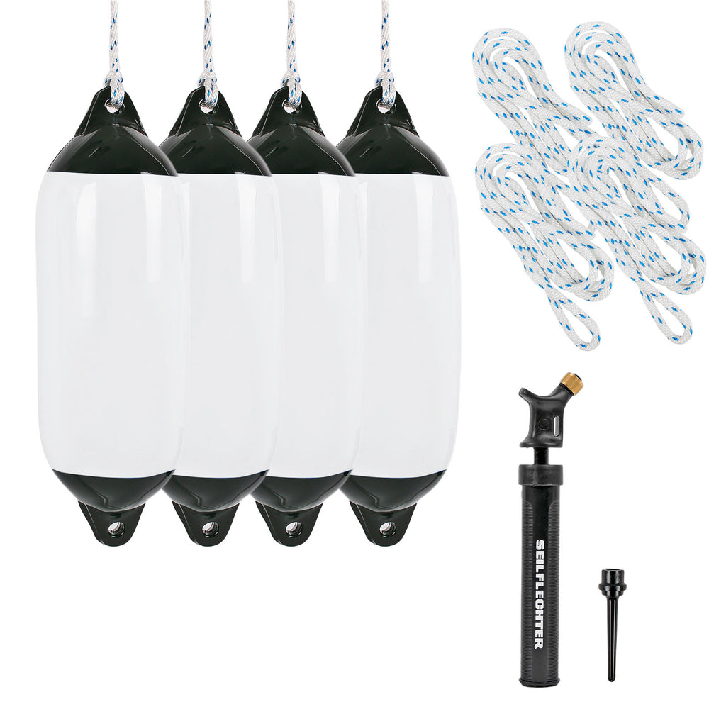 Genau das passende Bootszubehör, um sicher in den Hafen einzulaufen. Die 58 x 15 cm große Bootsfender dienen als Knautschzone zwischen Boot und Anlegestelle. In dieser Funktion bieten sie maximalen Schutz vor Schäden an der Bordwand und polstern bei Wellengang zwischen anderen Booten ab. Somit schützen Sie Ihr Boot vor unerwünschten Kratzern, Beschädigungen oder lästigen Schürfspuren. Für einen sicheren und zuverlässigen Einsatz ist eine passende Fenderpumpe und Fenderleine im Lieferumfang enthalten.