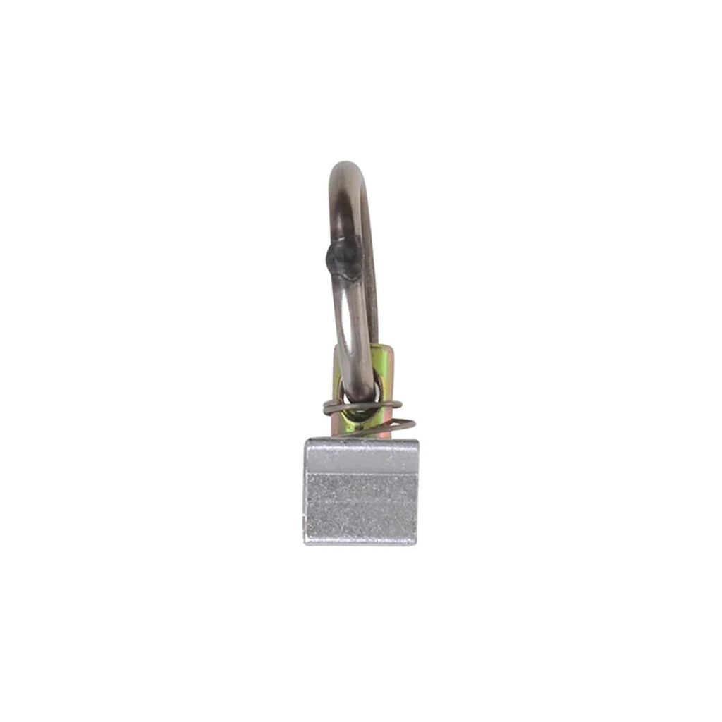 Der Fitting wird in die Zurrschiene eingesteckt und durch loslassen des Bolzens mit Feder arretiert und in der Schiene fixiert. Am Ring kann der Haken von Spanngurten eingehängt werden.