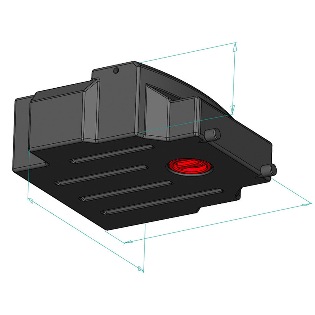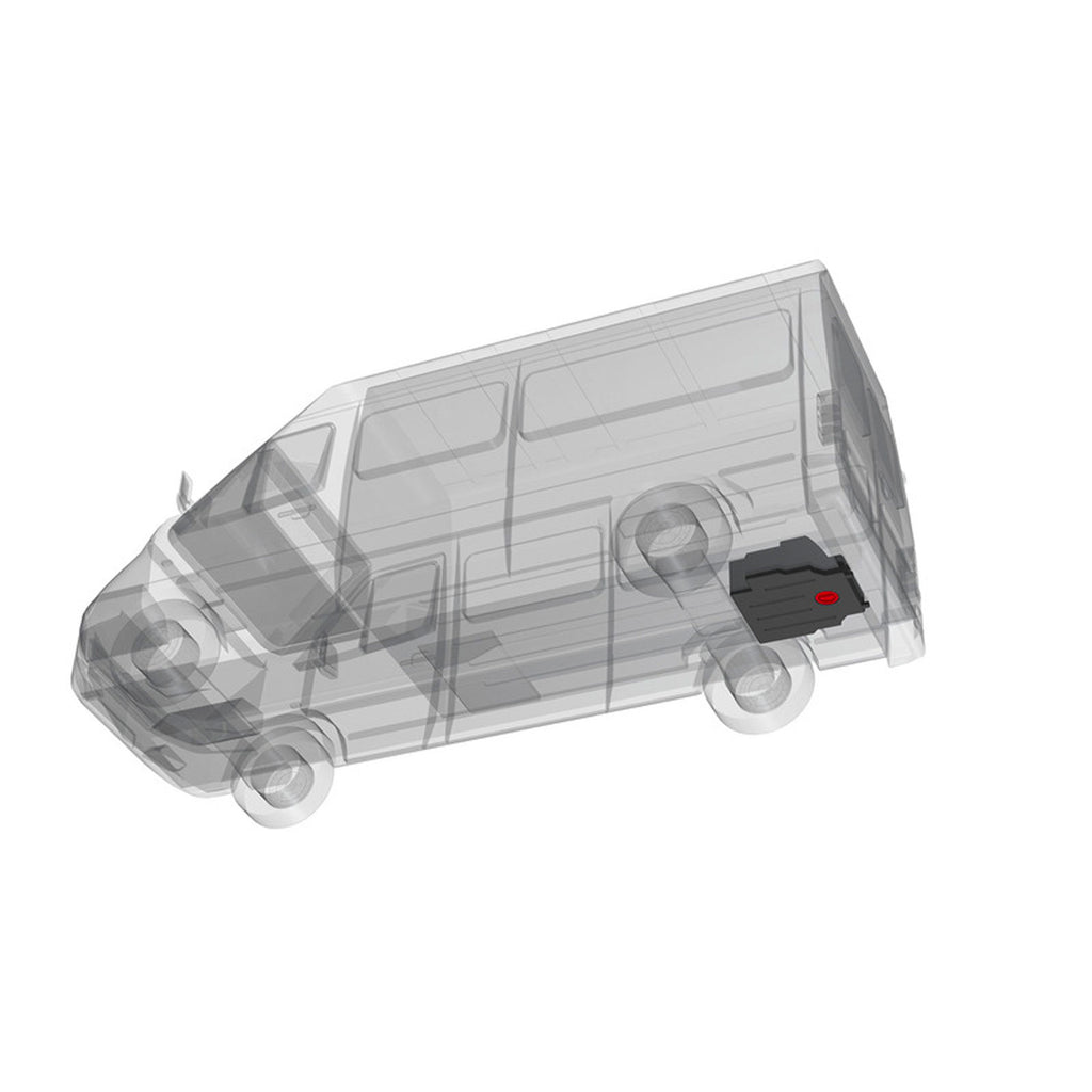 Der schwarze Unterflurtank aus PE wird hinter der Hinterachse montiert.