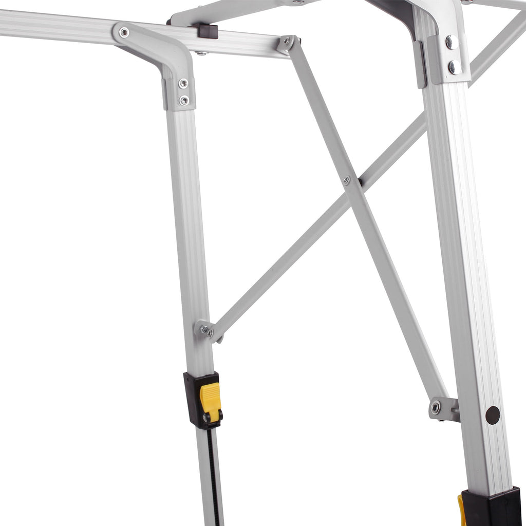 Alu Rolltisch mit neuartiger Tischkonstuktion für leichten und schnellen Aufbau. Alle 4 Beine höhenverstellbar. Kompaktes Staumaß in praktischer Transporttasche. Das Leichtgewicht aus Aluminium für alle Fälle.