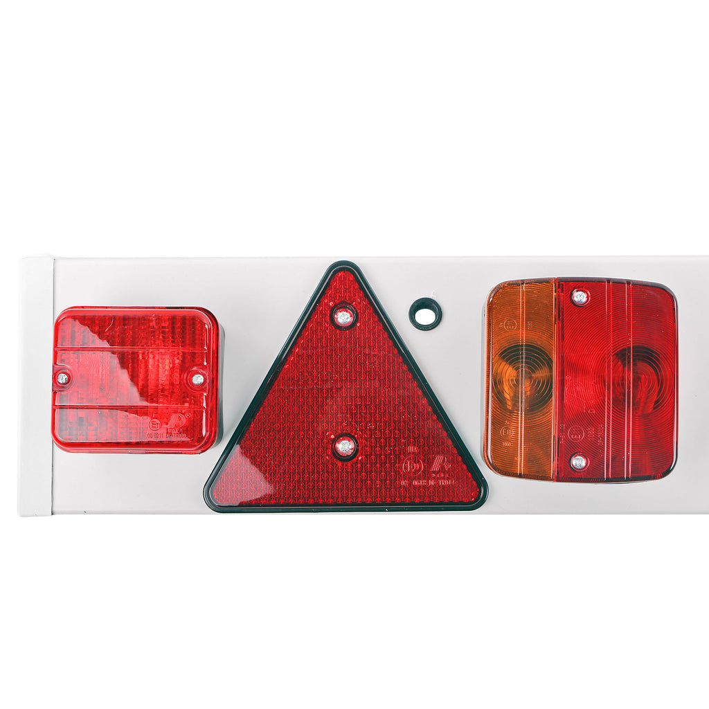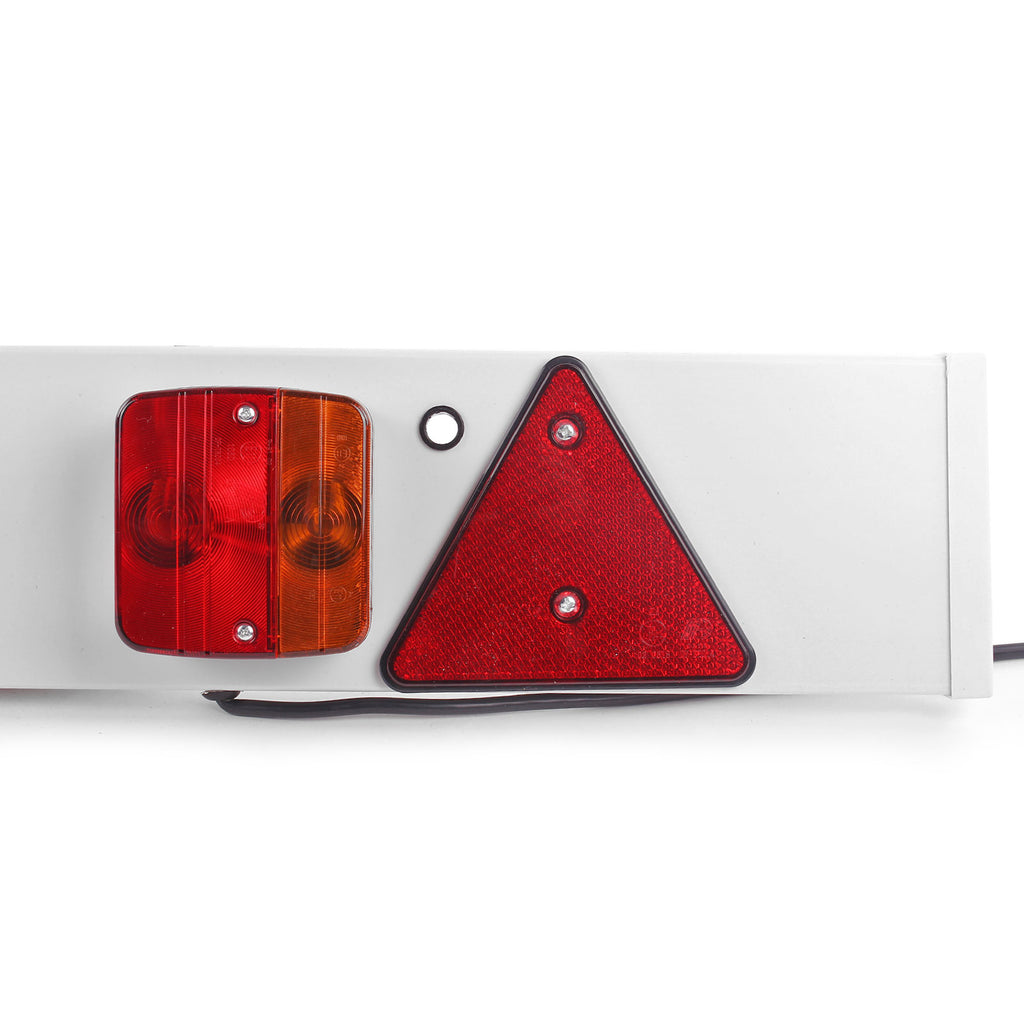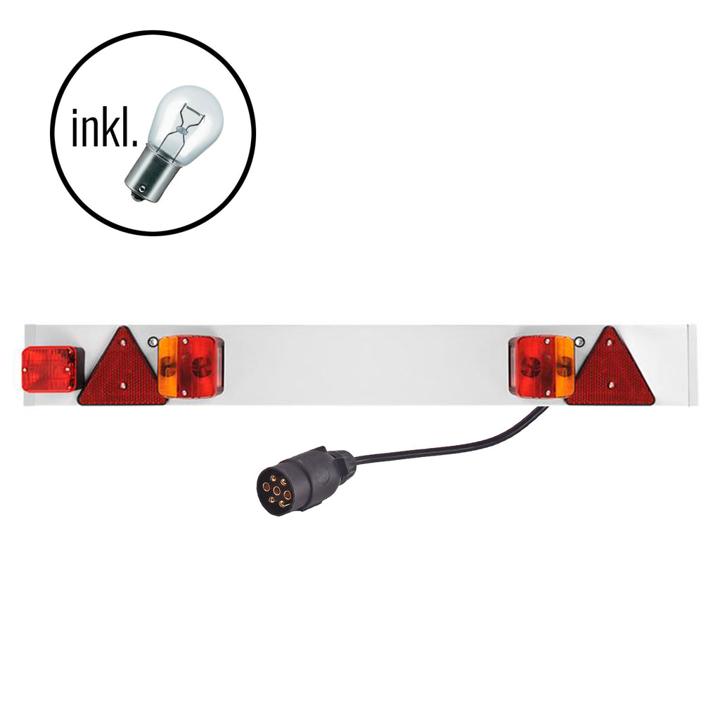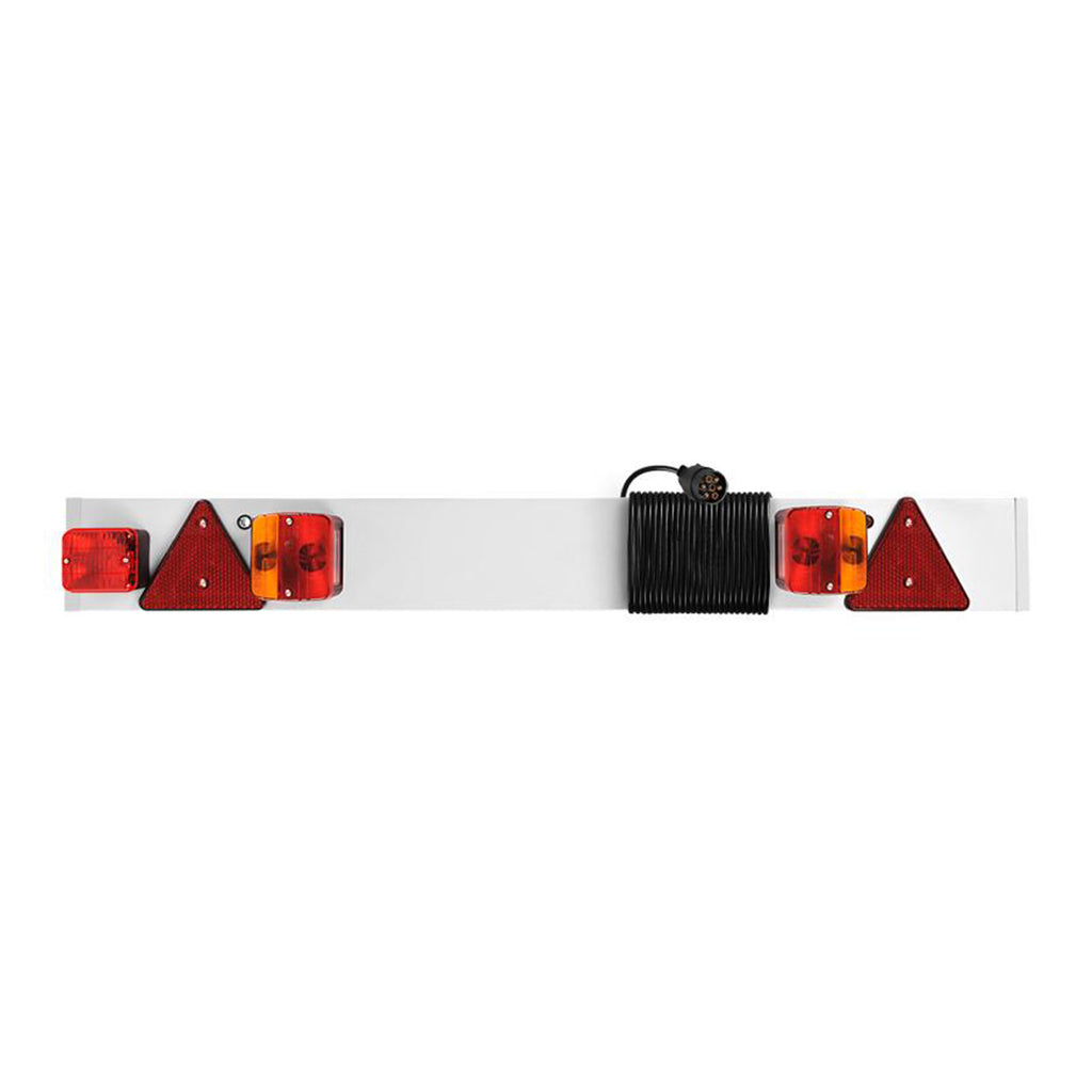 Anhänger Beleuchtungsbalken mit 7-poligem Adapterstecker für mehr Sicherheit im Straßenverkehr. Die Beleuchtungstafel mit Nebellicht und einem 5 Meter Verbindungskabel ist eine hervorragende Ergänzung für jeden Anhängertyp. Lediglich die alte Beleuchtungsvorrichtung entfernen und mit dem neuen Anhänger Beleuchtungsbalken ersetzen. Die dafür vorgesehenen Befestigungspunkte sind universal und lassen sich an fast allen gängigen Anhängermarken ausrichten.