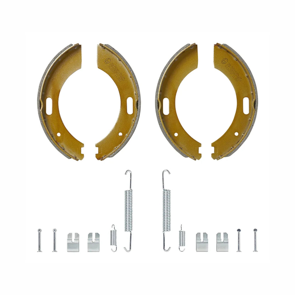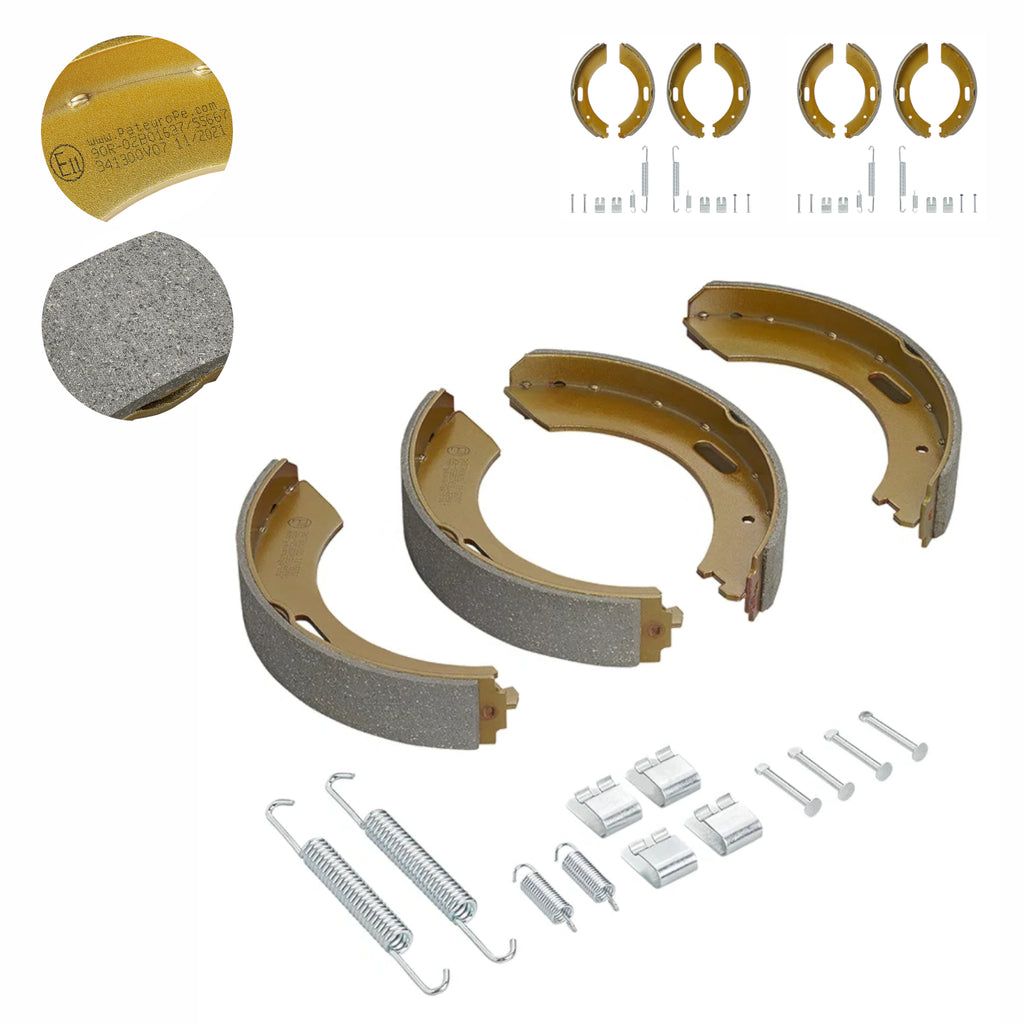 • je Satz: 4x Bremsbacken, 4x Zugfedern kurz, 4x Spannfeder, 4x Spannstift lang, 2x Zugfedern lang, 2x Spannstift kurz