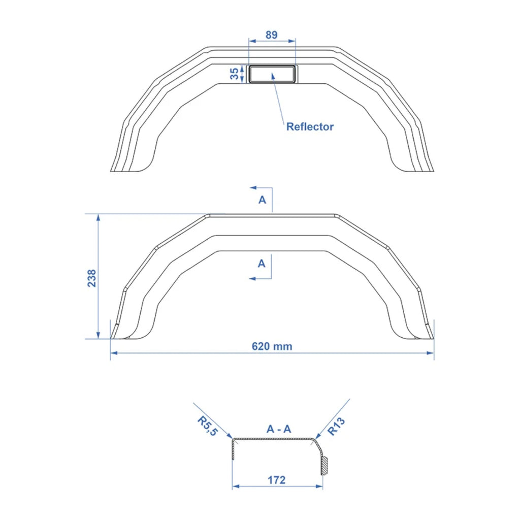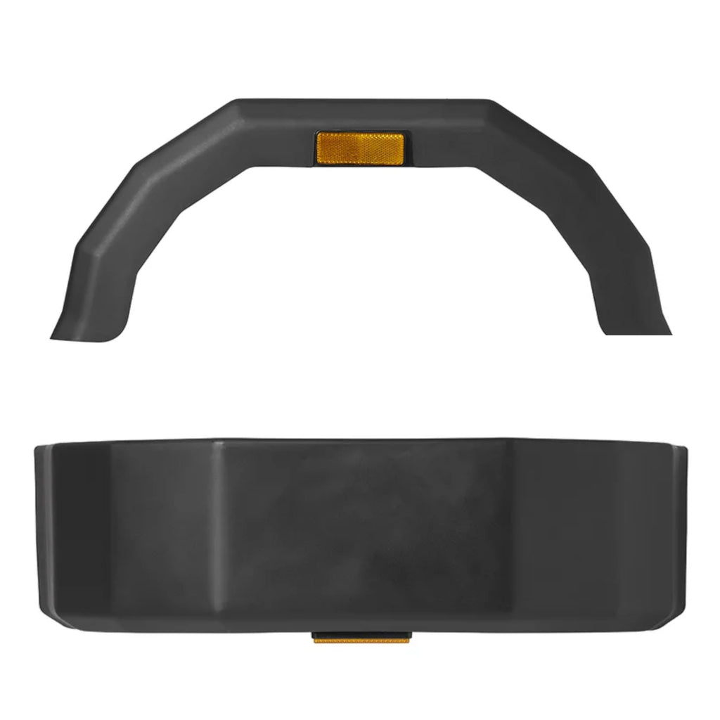Leichter Kotflügel aus Kunststoff für 10"-Räder mit Reflektor, ist geeignet für Anhänger, Pferdeanhänger und ähnliche. Zudem hat der Kotflügel eine gewölbte Schutzkante und ist einfach zu befestigen. Durch das flexible Material, sind einfache und leichte Rempler oder Stöße kein Problem.