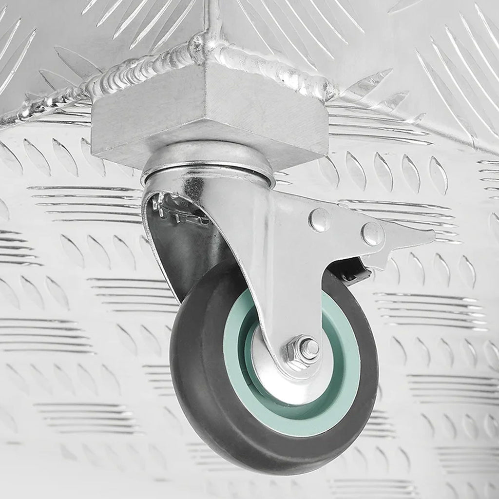 Die Transportkiste punktet mit Formstabilität und präziser Verarbeitung. Die Einsatzmöglichkeiten sind vielfältig, es gibt kaum einen Inhalt, für den eine Alubox nicht der ideale Transportbehälter wäre. Die einzigartige Qualität zeigt sich auch in den drei praktischen Tragegriffen aus bruchsicherem Kunststoff. Bei leichter Befüllung lässt sich die Alubox sehr bequem transportieren. Die gute Stapelbarkeit und das schicke Design der Kiste, tragen zur Überlegenheit gegenüber anderen Transportbehältern bei. Zubehör wie Rollen und Schlösser runden das Programm ab.