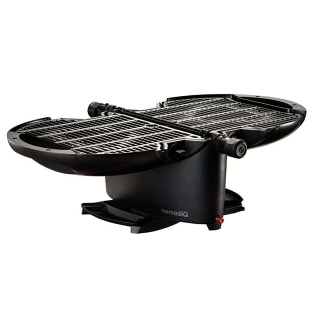 Dieser kompakte Camping - Grill von NomadiQ, besticht durch einfache Bedienelemente, leichte Reinigung & geringes Gewicht mit gleichzeitig hohem Tragekomfort. Durch Zwei verschiedene Arbeitsflächen, lässt sich mit diesem Campinggrill sowohl kochen, als auch grillen.