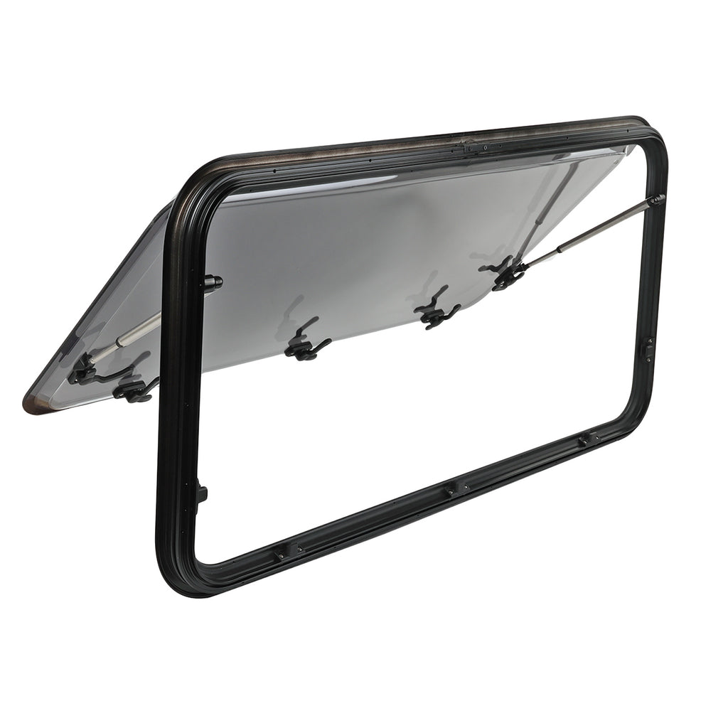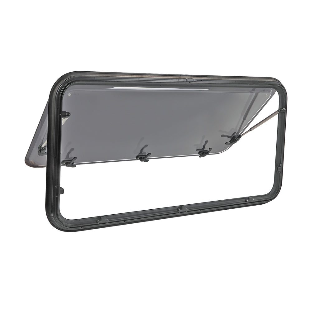 Das wamovo Ausstellfenster aus Acrylglas ist ein echter Hingucker! Die Scheibe schließt flächenbündig mit dem hochwertigen, schwarzen Aluminiumrahmen ab. Das Fenster lässt sich über den Teleskopaussteller verstellen. Die getönte doppel-acrylverglaste Scheibe isoliert hervorragend.