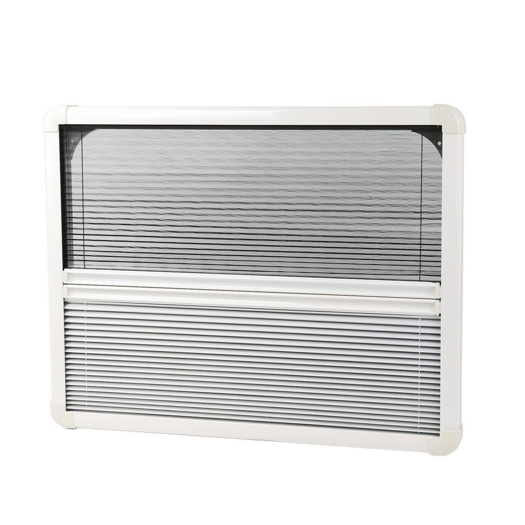 Da geht noch mehr! Das hier angebotene Set inkl. Innenrollo beinhaltet weitere Verdunkelungsmöglichkeiten und Insektenschutz für dein Camper-Fenster. Dieses Plisseerollo wurde speziell für das Ausstellfenster von wamovo produziert. Es sorgt dafür, dass das Fenster auch während der hellen Stunden nahezu lichtundurchlässig und blickdicht wird.