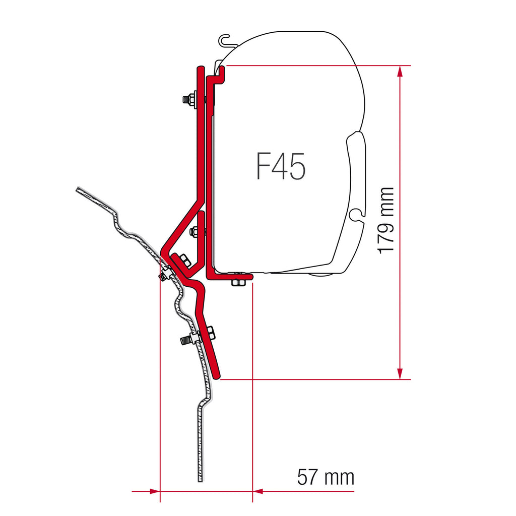 Dieser Monatgekit ist mit fahrzeugspezifischen Haltern ausgestattet, was Ihnen ermöglich eine Fiamma Markise der Baureihe F45 zu montieren