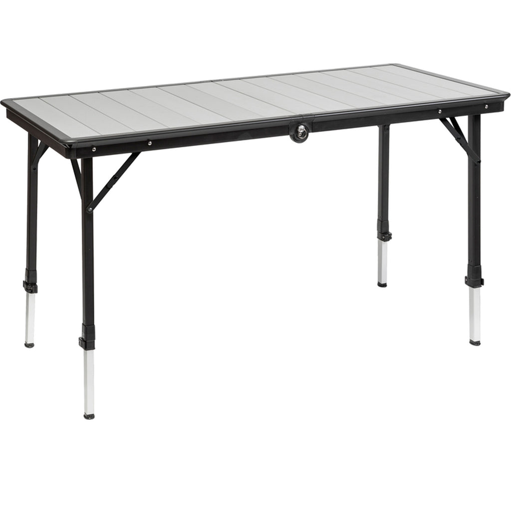 Der Dinemic 4 ist ein hochwertiger Outdoor- und Campingtisch mit einer speziellen Klappplatte aus besonders wetterfesten und verschleißfesten Aluminiumlamellen. Das pulverbeschichtete Metallgestell ist mit höhenverstellbaren Beinen ausgestattet. Zusammengeklappt lässt er sich sehr kompakt verstauen und ist daher ideal für Kleinbusse, Vans und Wohnmobile.