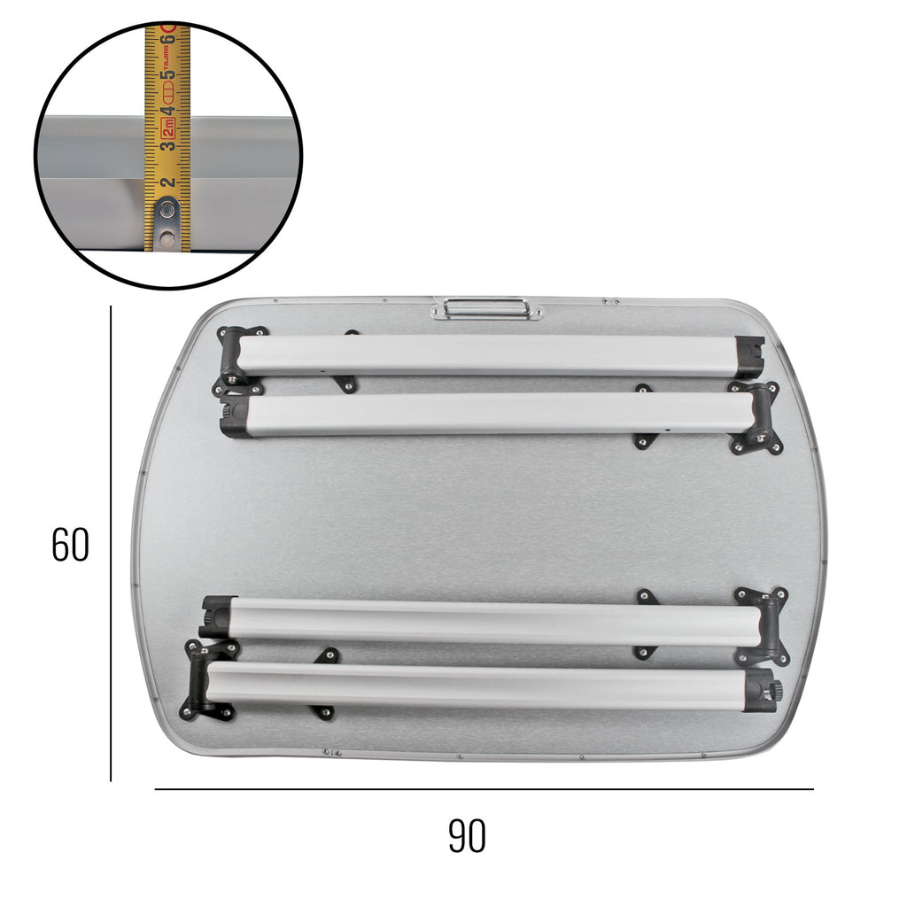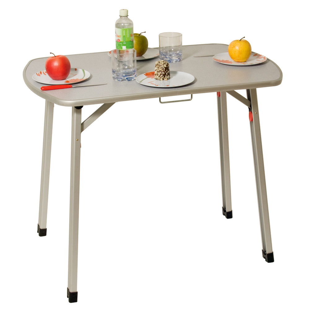 Der besonders standfeste Campingtisch mit einklappbaren Füßen. Besonders stabile Konstruktion aus Aluminium. Der Tisch kann dank seines geringen Packmaßes überall verstaut werden.