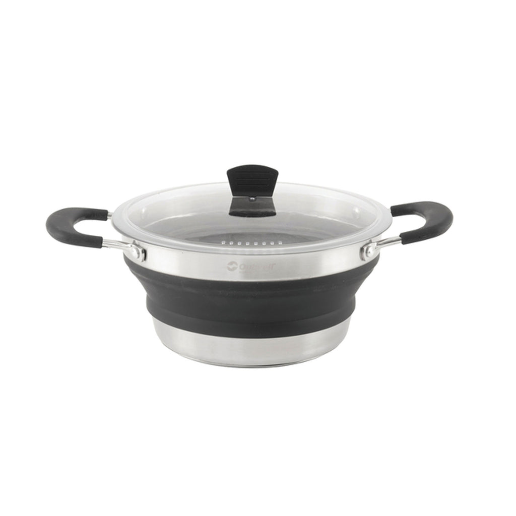 Der faltbare Kochtopf inkl. Deckel von Outwell eignet sich ideal fürs Camping, bei Outdoor-Aktivitäten, für Festivals oder im Garten. Ausgeklappt hat der Topf ein Fassungsvermögen von 2,5 Liter und kann als ganz normaler Kochtopf auf allen Wärmequellen, bis auf Backofen und Mikrowelle, verwendet werden. Zusammengeklappt ist der Campingtopf extrem platzsparend und findet in jeder Wohnmobil, Wohnwagen oder Campervan Küche platz.