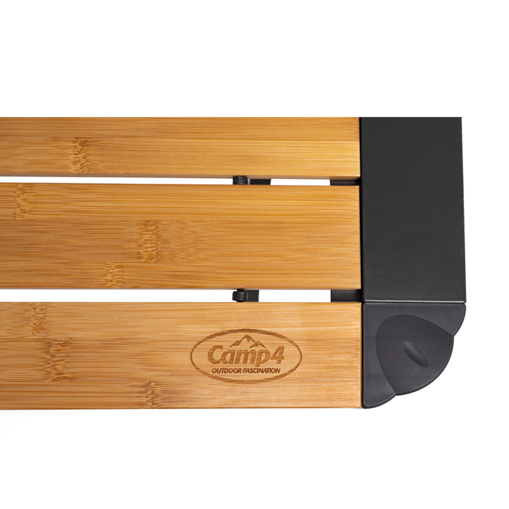 Der leichte Campingtisch MENDOZA punktet mit Bambus-Tischplatte und Gestell aus Aluminium und eignet sich ideal für ein Campingtrip mit der Familie oder Freunden. Das praktische Aufbewahrungsnetz kann zusätzlich als Stauraum genutzt werden. Dank der Tragetasche lässt sich der Rolltisch optimal transportieren und verstauen und findet in jedem Kastenwagen oder Campingbus platz.