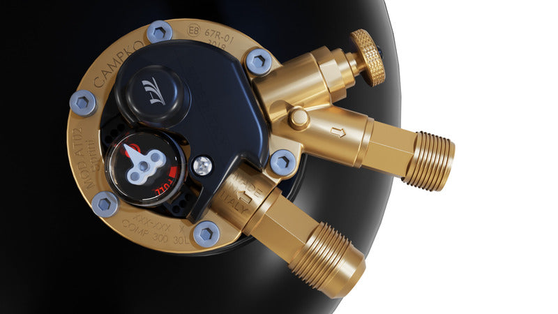 Die CAMPKO Gastankflasche mit 30 Litern Fassungsvermögen ist speziell für den Festeinbau in Wohnmobilen, Camper Vans und Caravans konzipiert. Mit ihrem robusten Stahlgehäuse und einem integrierten Multiventil bietet sie eine zuverlässige und sichere Lösung für die Gasversorgung unterwegs.