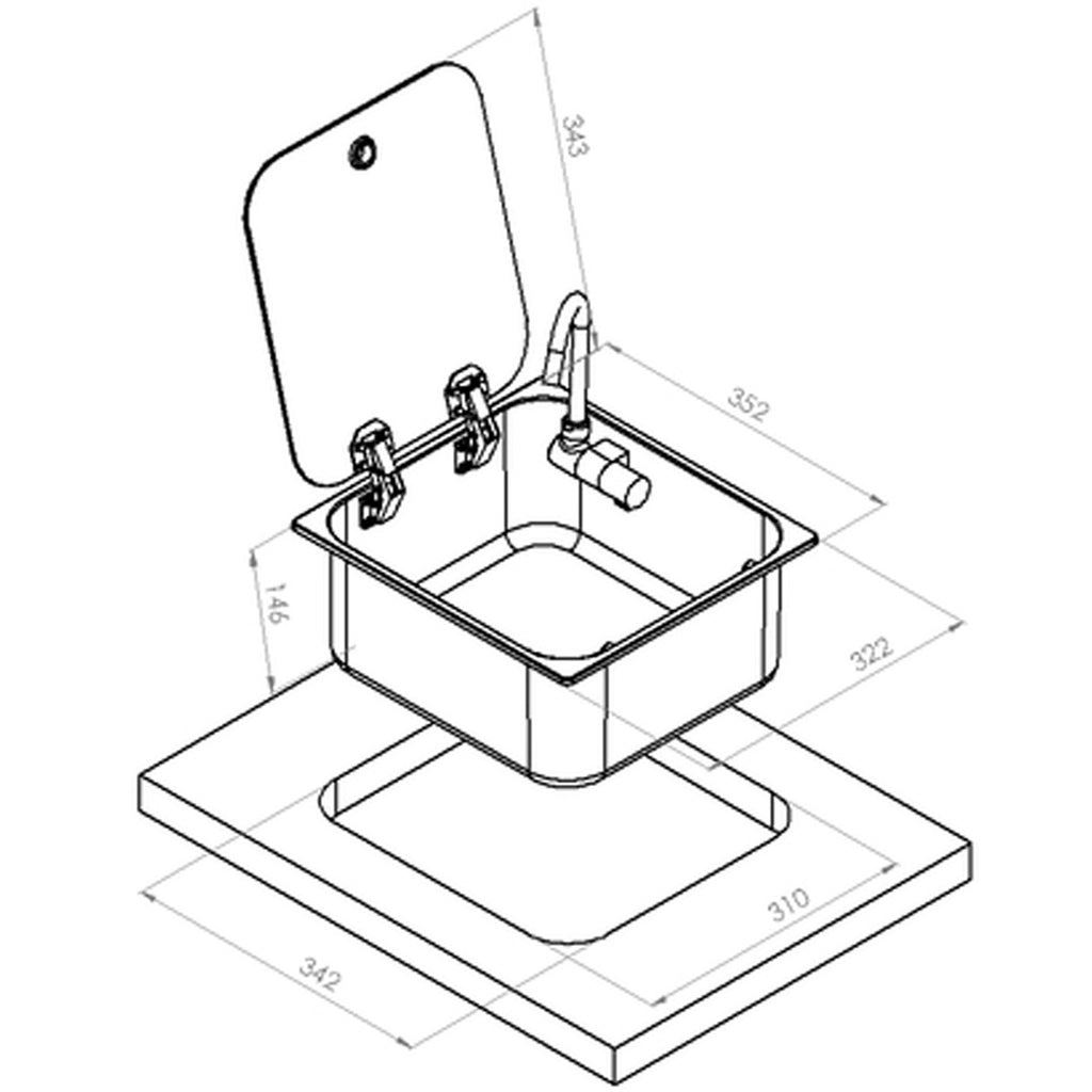 Die perfekte Einbauspüle für deine Camping-Küche. Die Edelstahl-Küchenspüle im hochwertigen Design kommt mit einer eleganten Glasabdeckung. Diese Abdeckung verleiht nicht nur Stil, sondern macht die Reinigung kinderleicht. Die Edelstahl-Basis ist strapazierfähig und pflegeleicht.