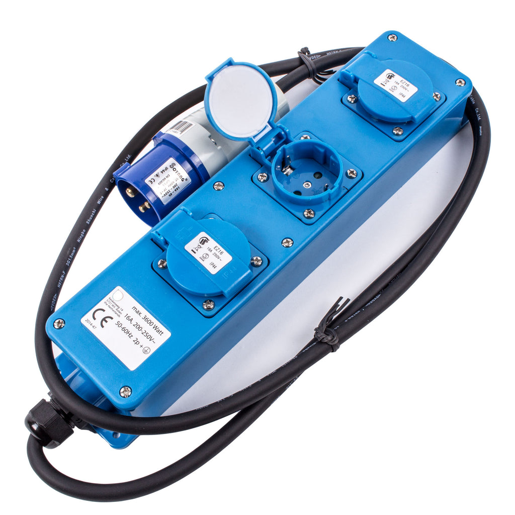 • Soyang® Neopren Mehrfachstecker mit CEE Kupplung und 3 Schuko Steckdosen