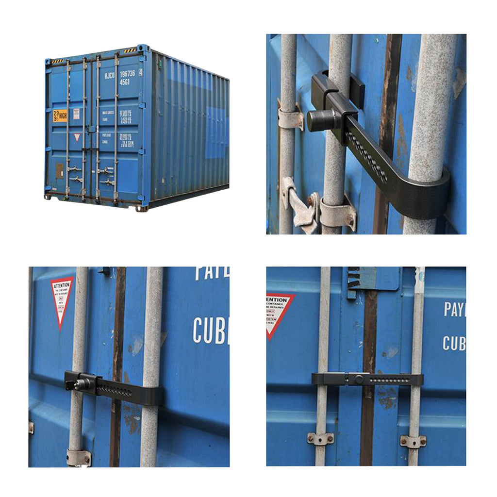 Universal Containerschloss aus gehärtetem Stahl, speziell entwickelt um Seecontainer zu schützen. Hochsicherheitszylinderschloss mit Schutzkappe, Stahl Riegel aus gehärtetem Stahl pulverbeschichtet.