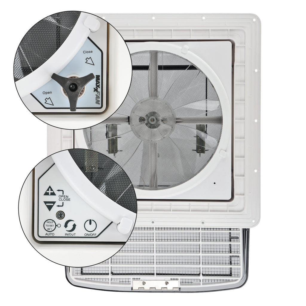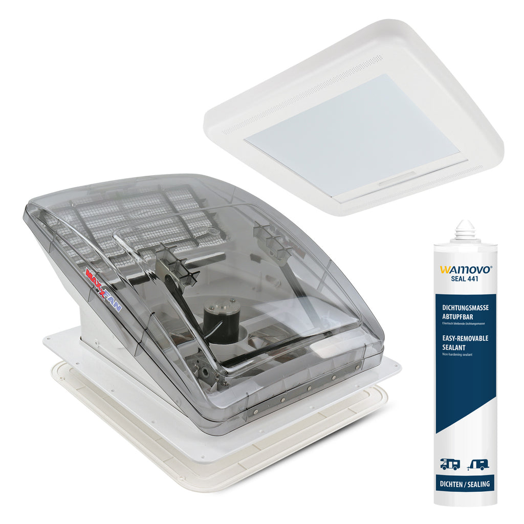 Die MaxxFan Deluxe Dachhaube kann für Zu- und Abluft verwendet werden. Die einzigartige, patentierte Regenabdeckung sorgt dafür, dass keine Feuchtigkeit eindringen kann, sogar während der Fahrt .Weitere Vorzüge sind: Die Bedienung per Fernbedienung und die Thermostatsteuerung (einfach die gewünschte Raumtemperatur einstellen). Hält Wohnwagen oder Wohnmobil dank des leistungsstarken Ventilators angenehm kühl.